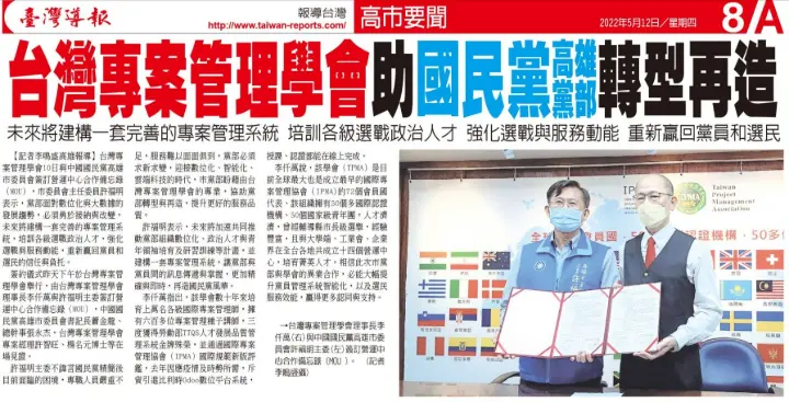 台灣專案管理學會與中國國民黨高雄市委員會簽訂營運中心合作備忘錄