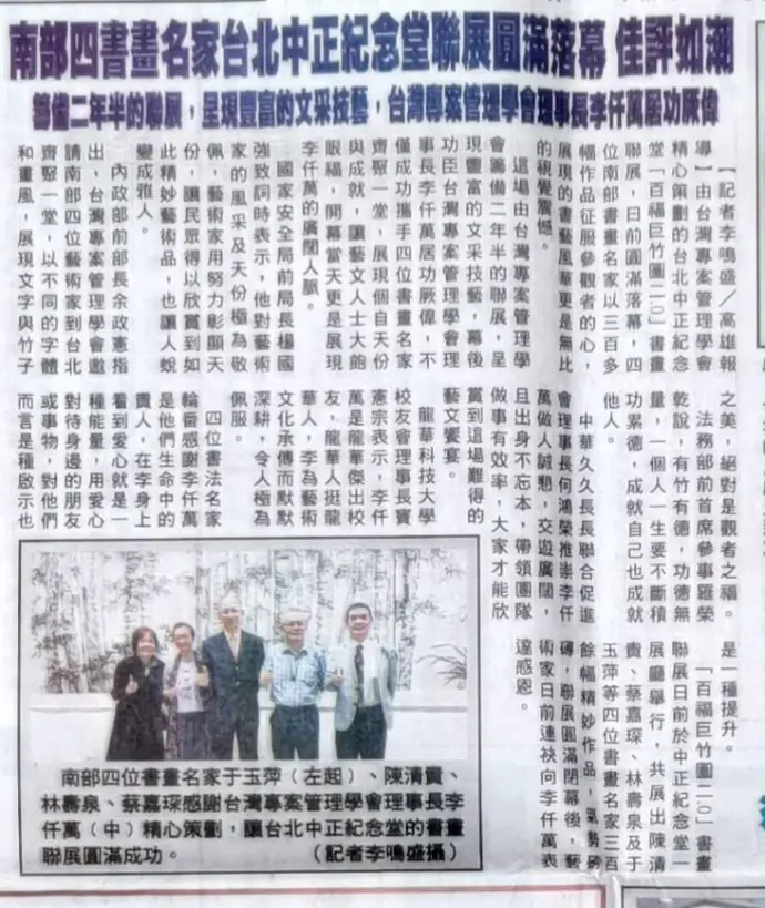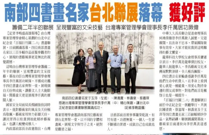南部四書畫名家台北中正紀念堂聯展圓滿落幕 佳評如潮 籌備二年半的聯展,呈現豐富的文采技藝,台灣專案管理學會理事長李仟萬居功厥偉