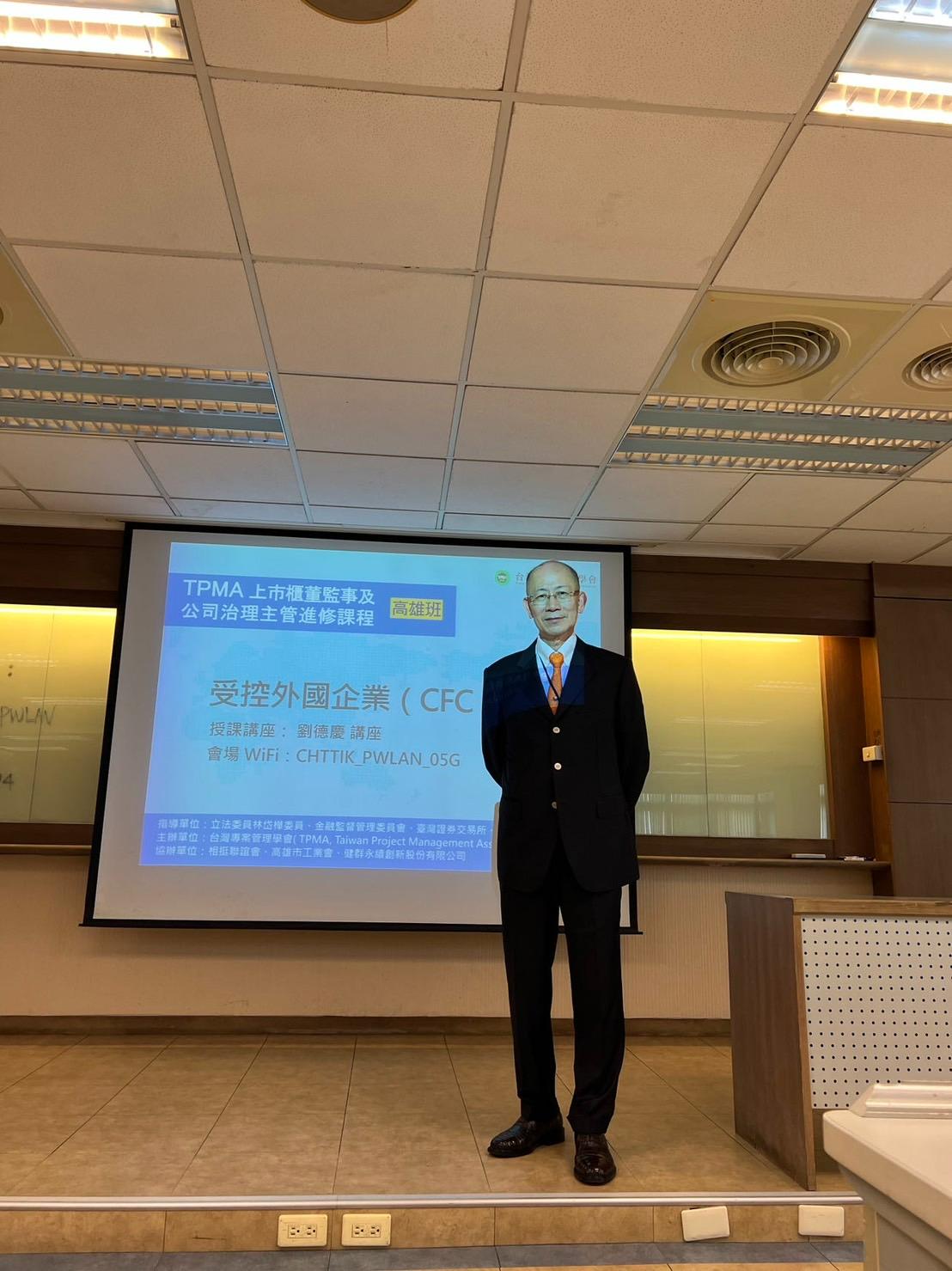 TPMA七日於中華電信學院高雄所,舉行「上市櫃董監事及公司治理主管進修課程高雄班」,邀請劉德慶主任納保官擔任授課講座,說明「受控外國企業(CFC)制度」的沿革及法條規範,共有上市櫃及科技公司、管理顧問公司、大學講師等四十七人報名參加。
