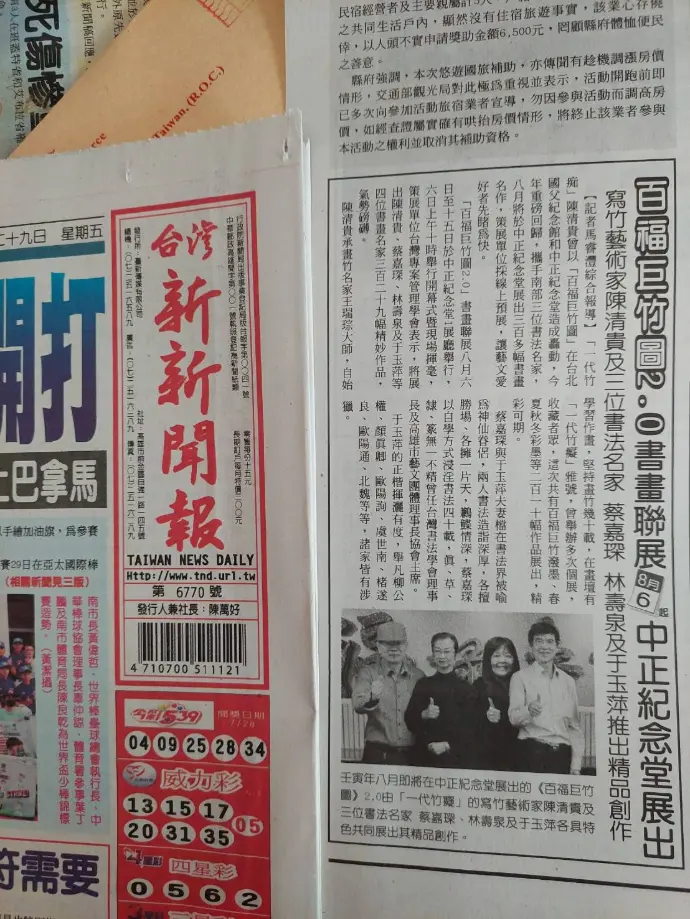 書畫名家陳清貴、蔡嘉琛、于玉萍和林壽泉 「百福巨竹圖2.0」書畫聯展8/6~8/15中正紀念堂展出