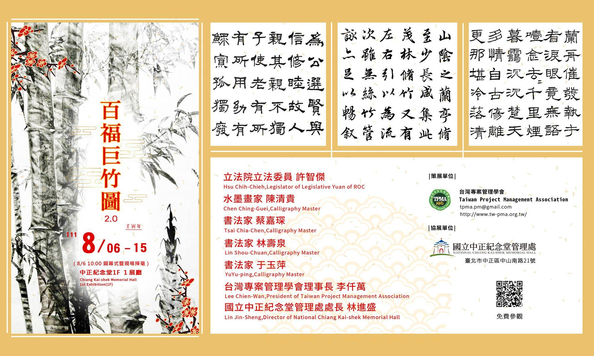 台灣專案管理學會百福巨竹圖2.0名家書畫聯展 8月6日至15日相約台北中正紀念堂