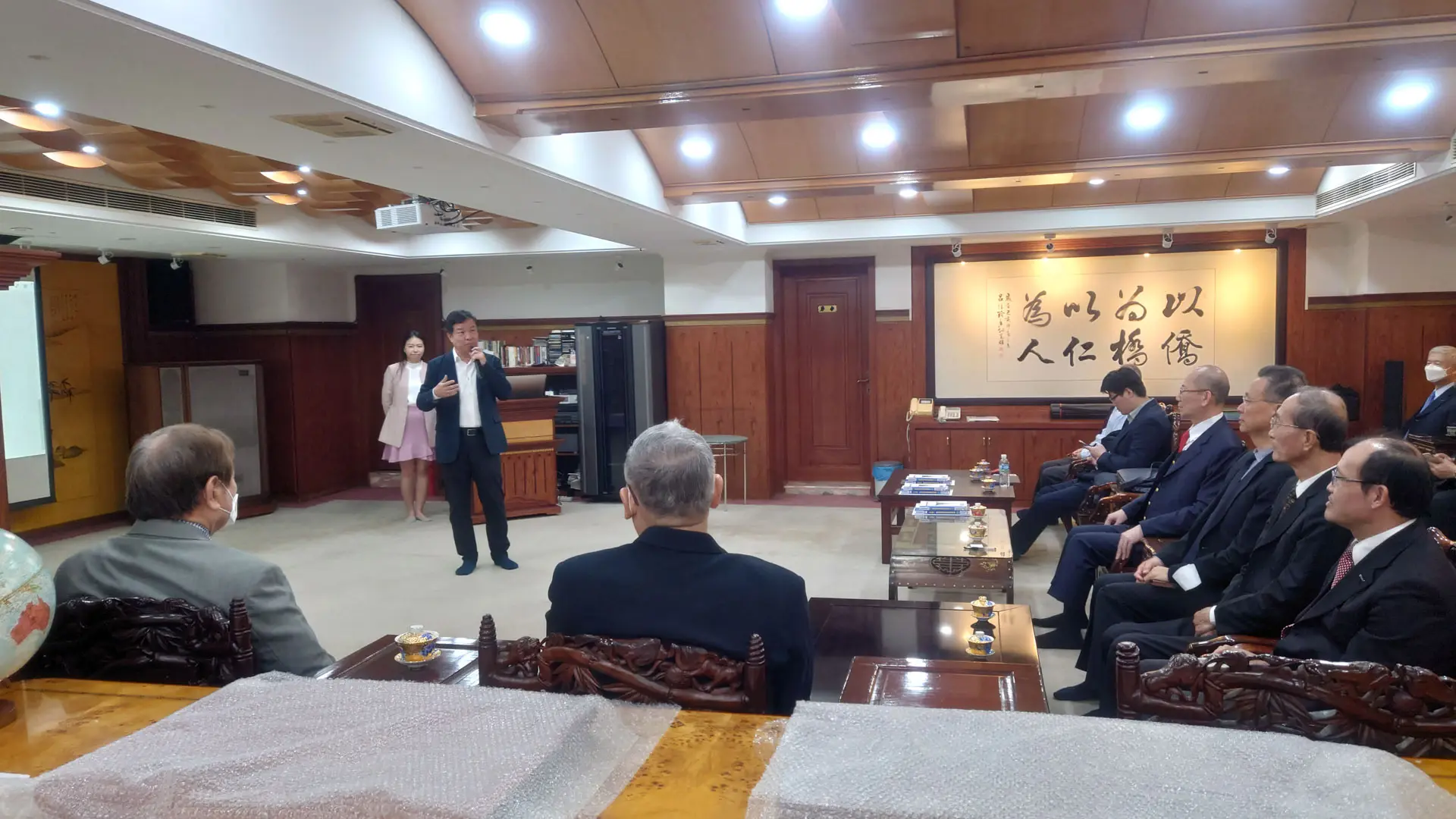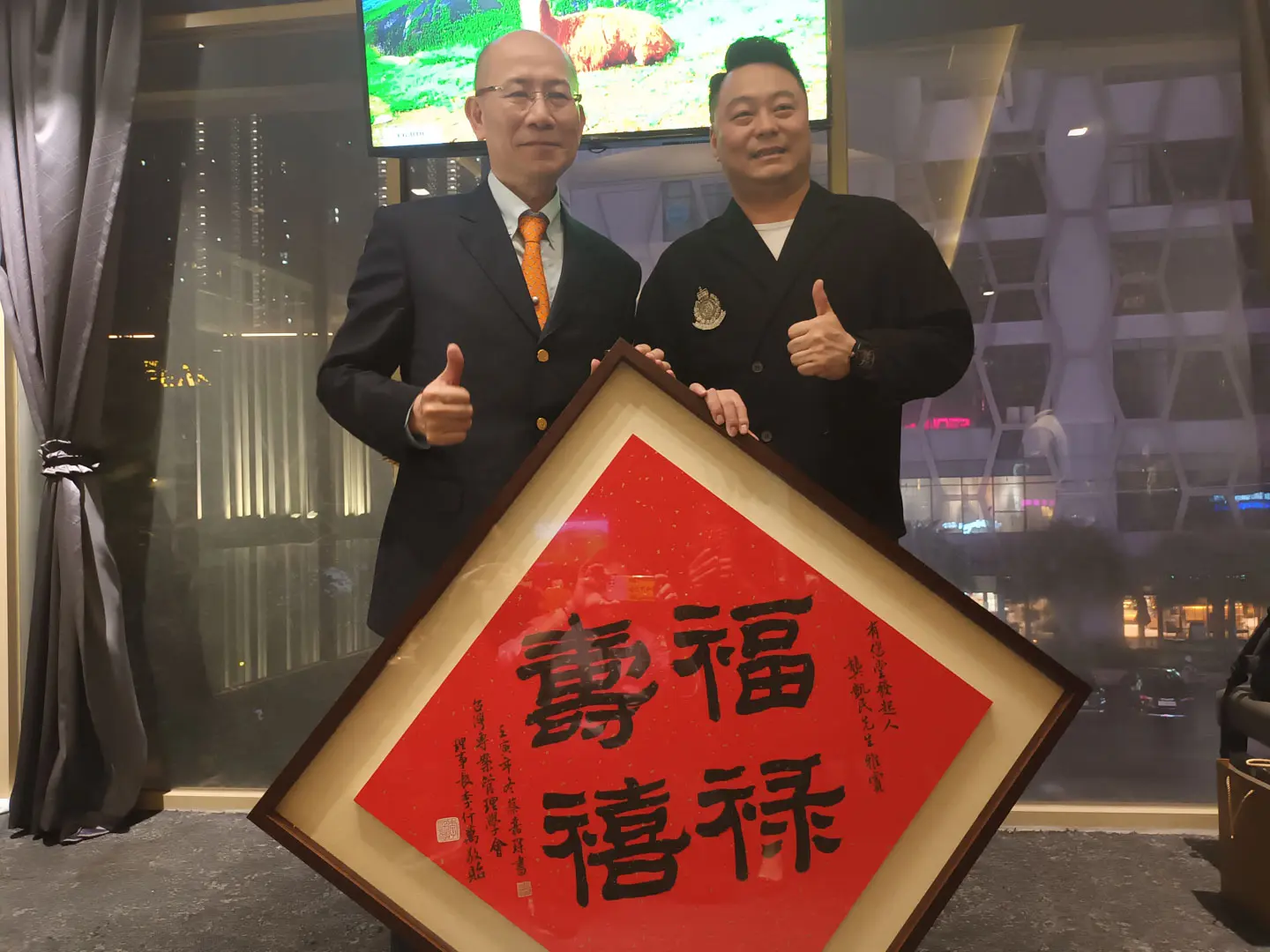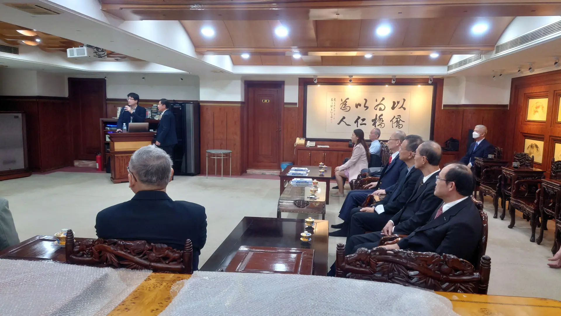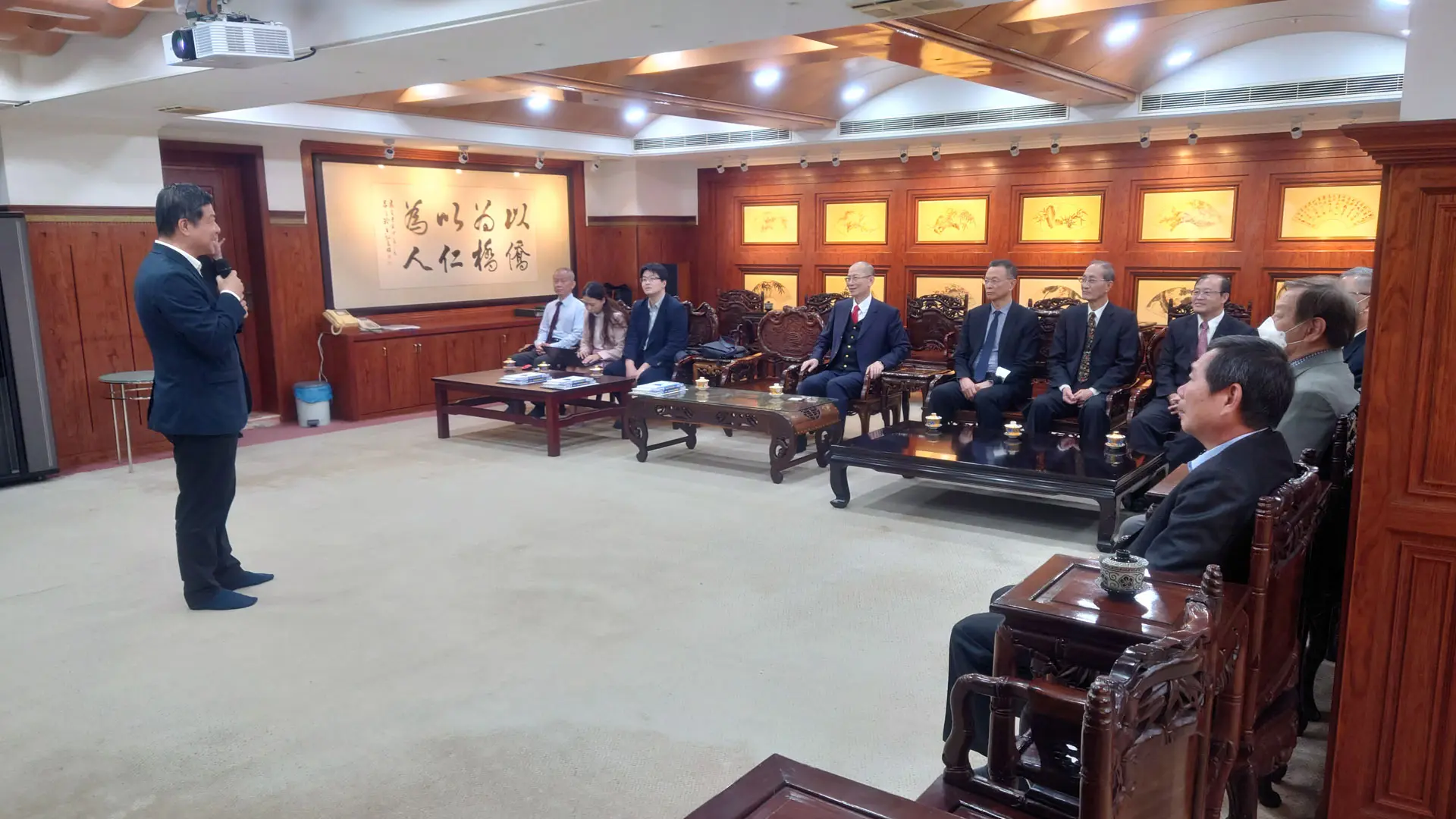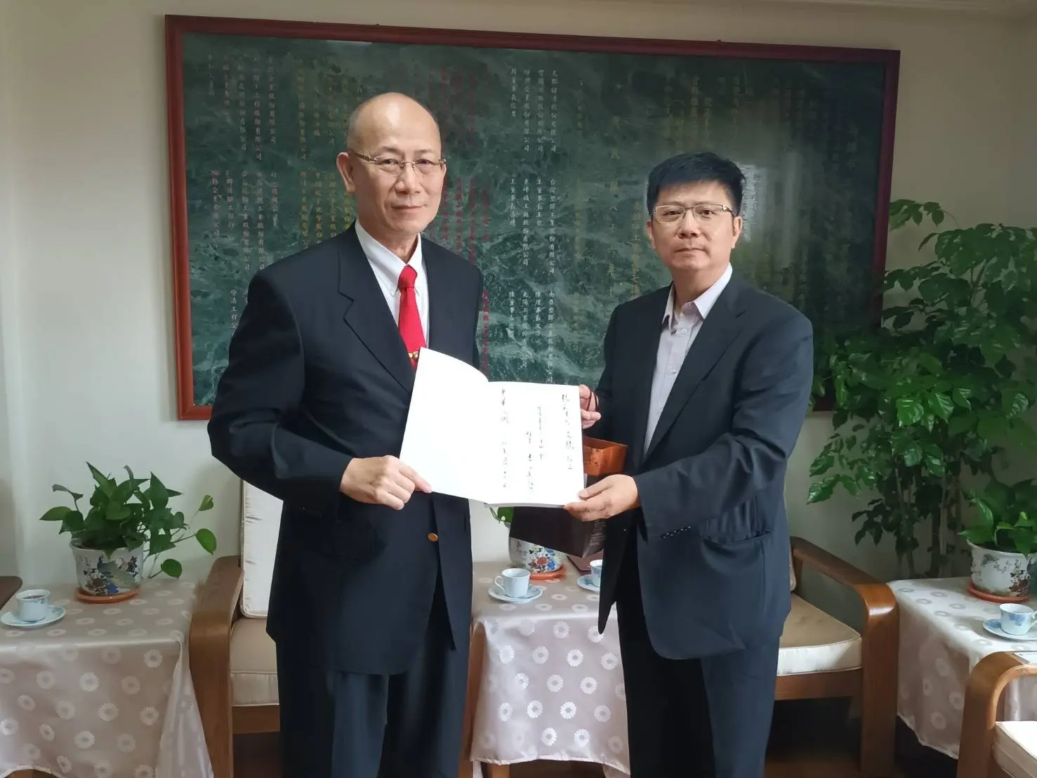 TPMA 理事長李仟萬 先生 致贈陳清貴老師墨竹予高雄市政府 陳其邁市長祝福市民平平安安幸幸福福,並進行多元交流及合影留念。