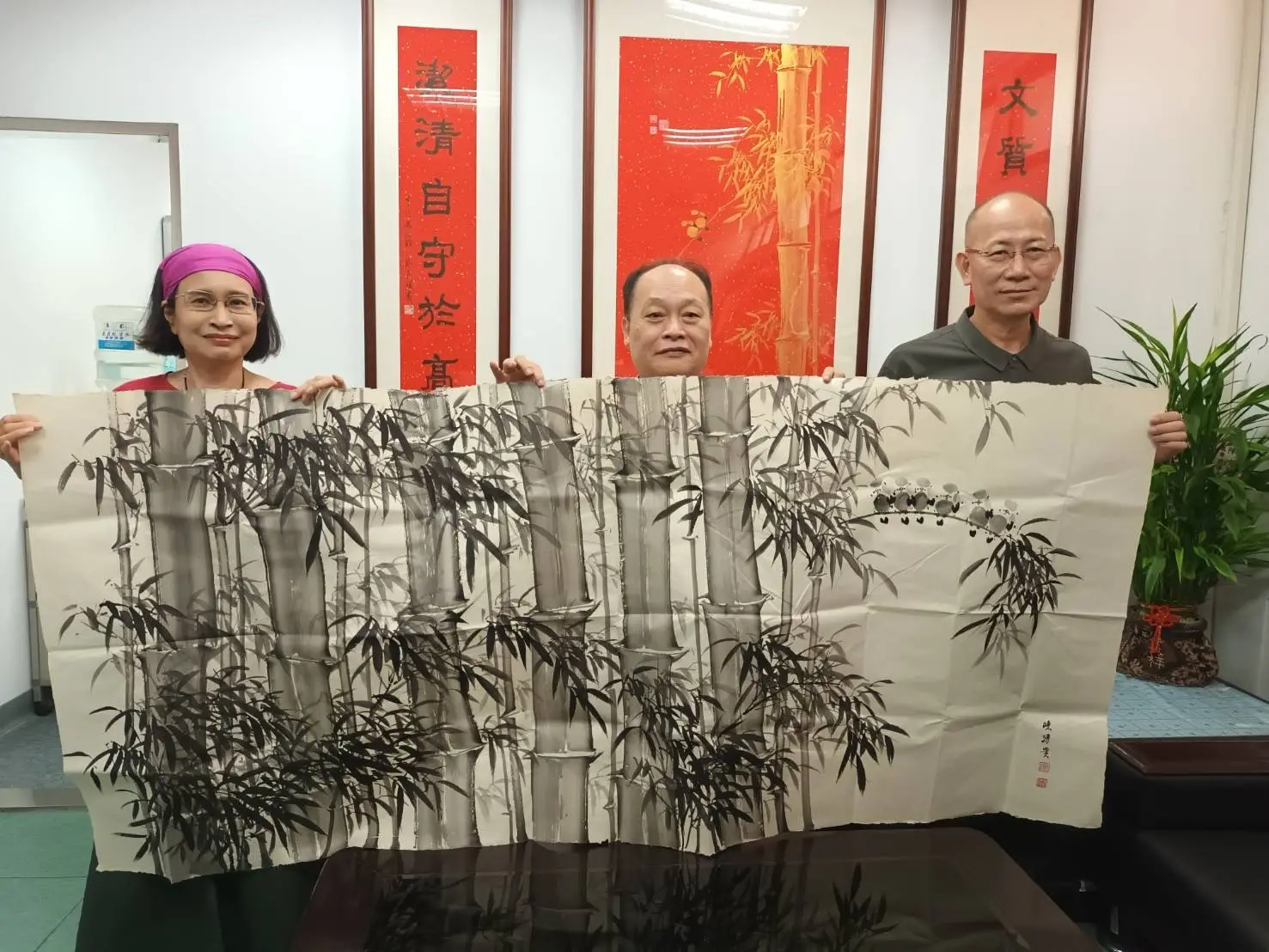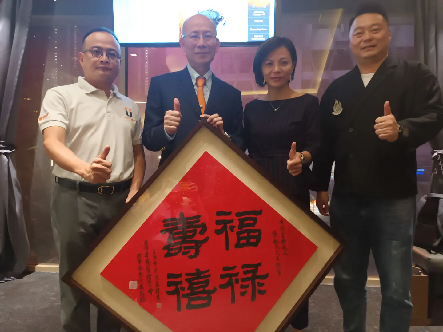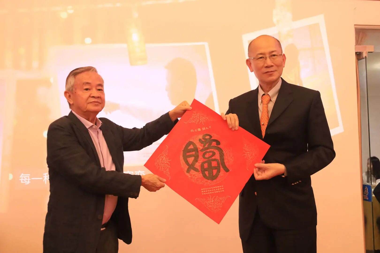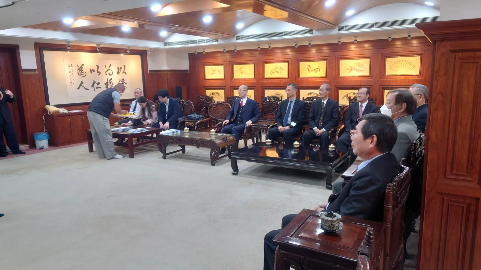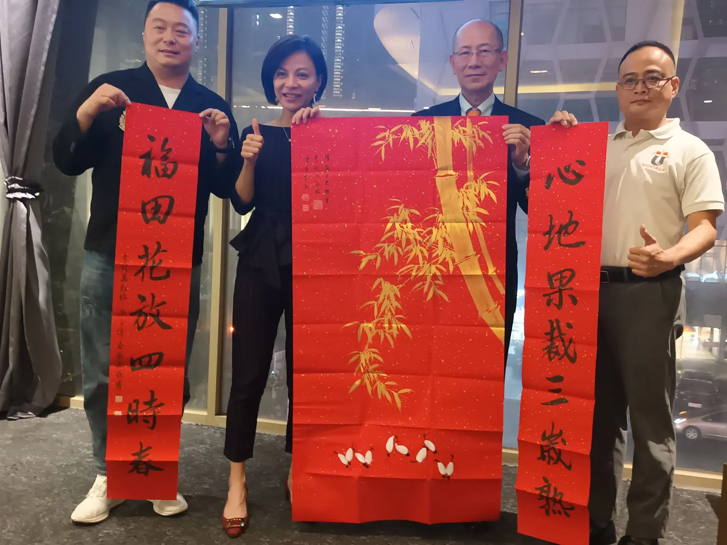 TPMA 理事長李仟萬 先生 致贈陳清貴老師墨竹予高雄市政府 陳其邁市長祝福市民平平安安幸幸福福,並進行多元交流及合影留念。