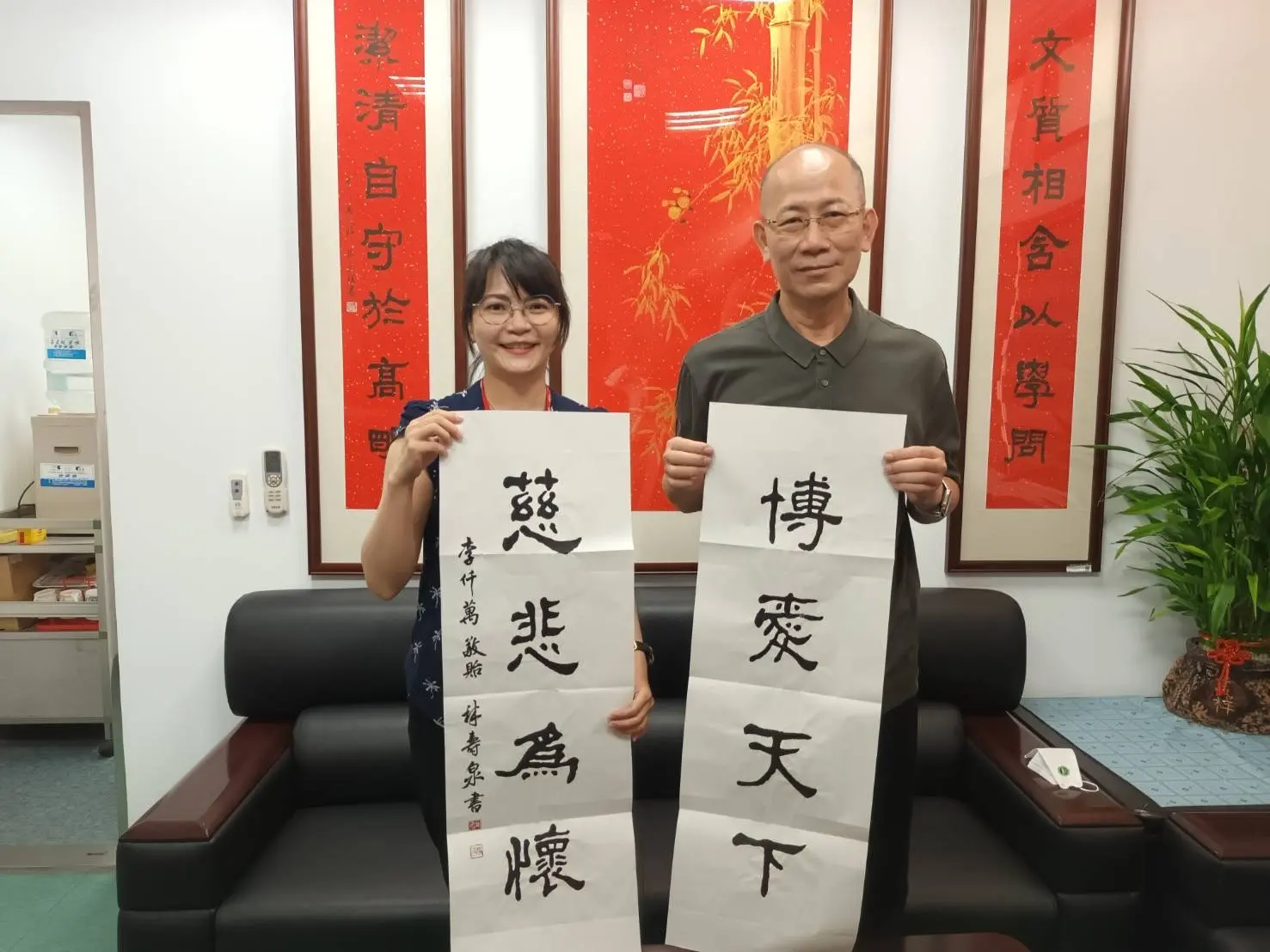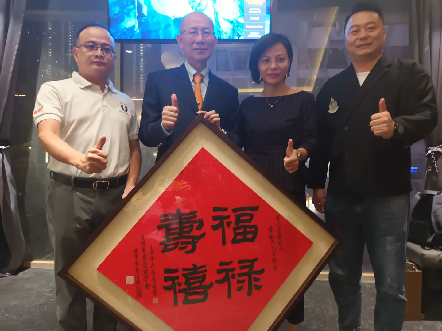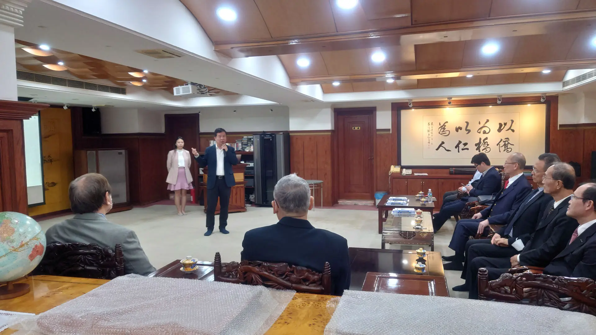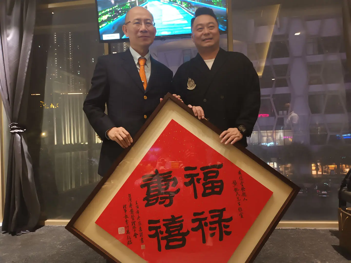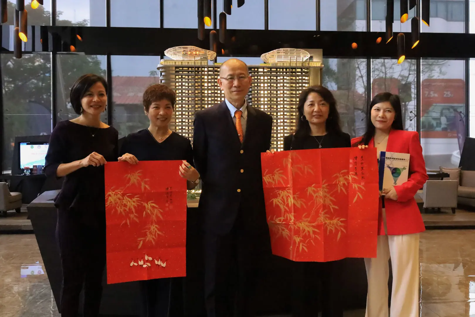 TPMA 理事長李仟萬 先生 致贈陳清貴老師墨竹予高雄市政府 陳其邁市長祝福市民平平安安幸幸福福,並進行多元交流及合影留念。