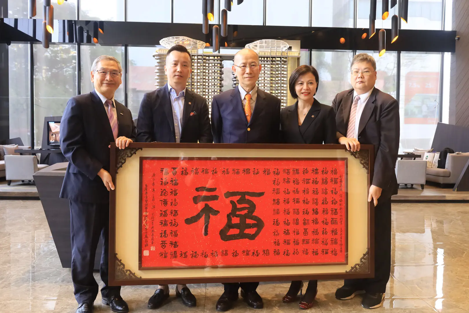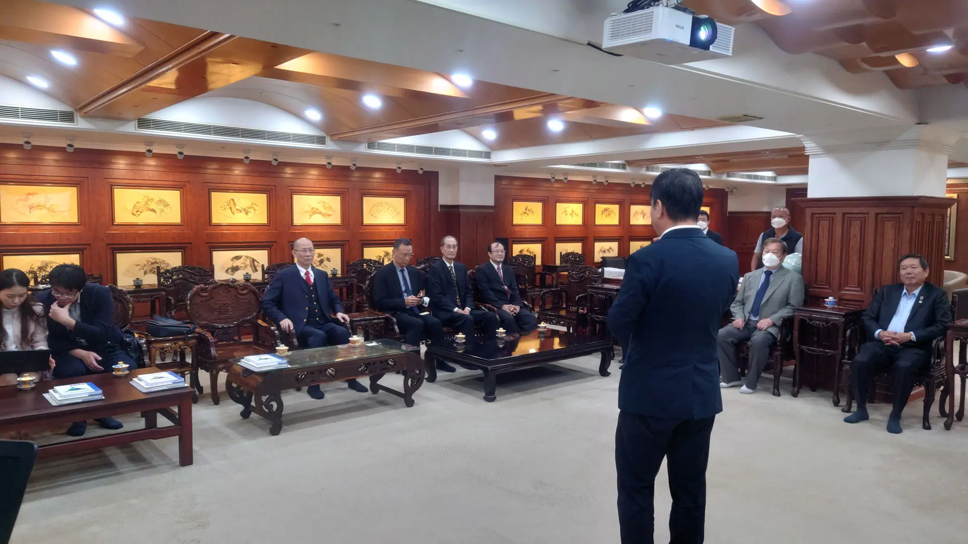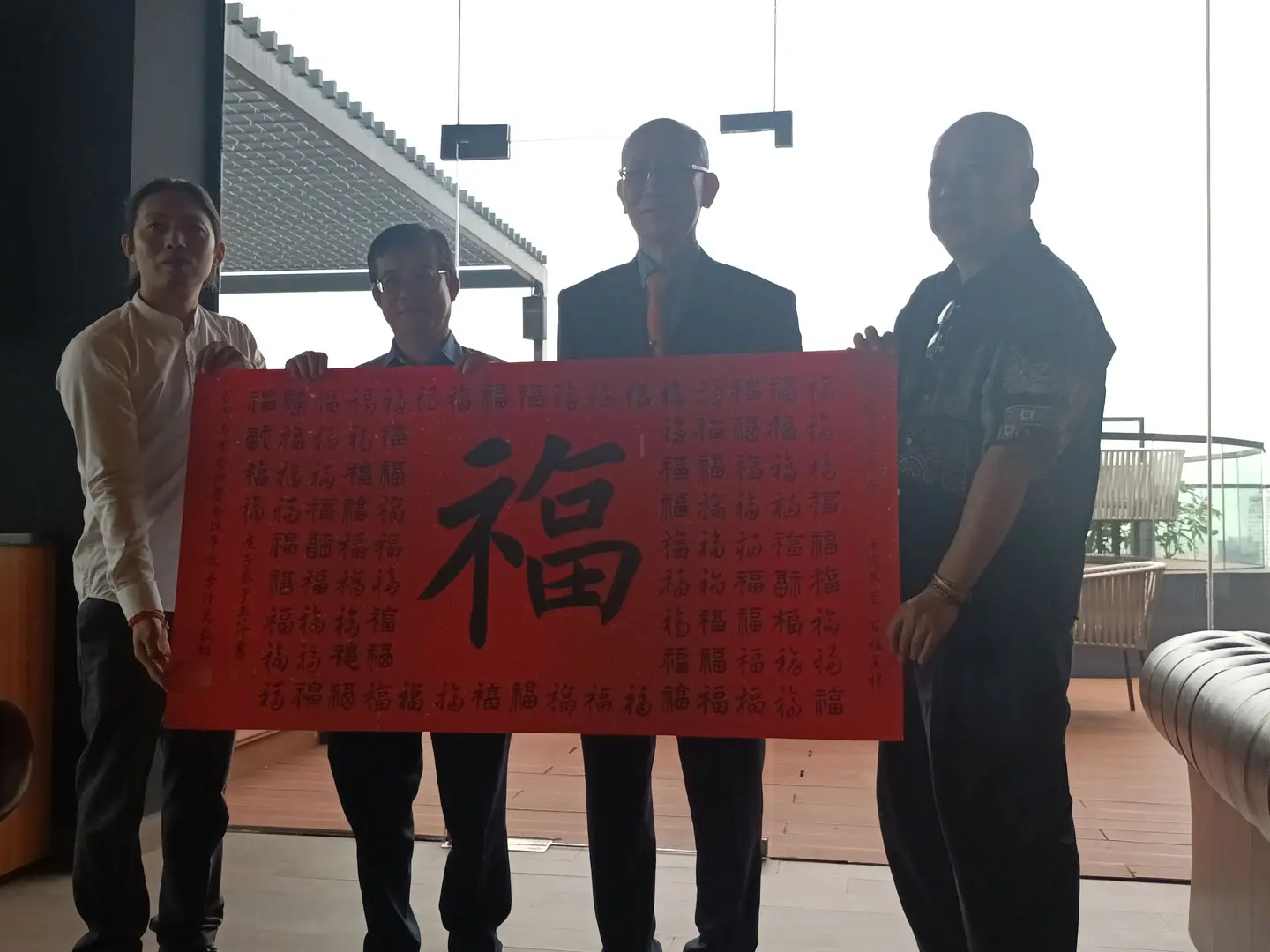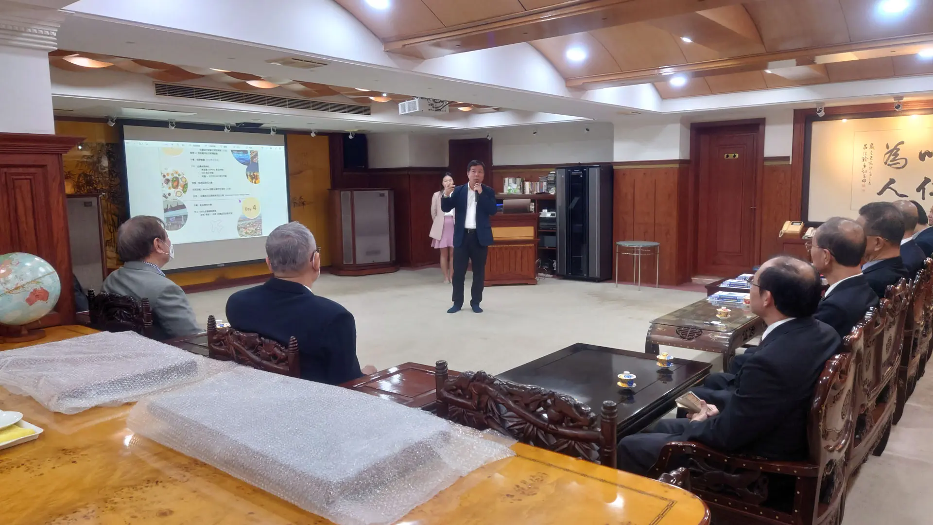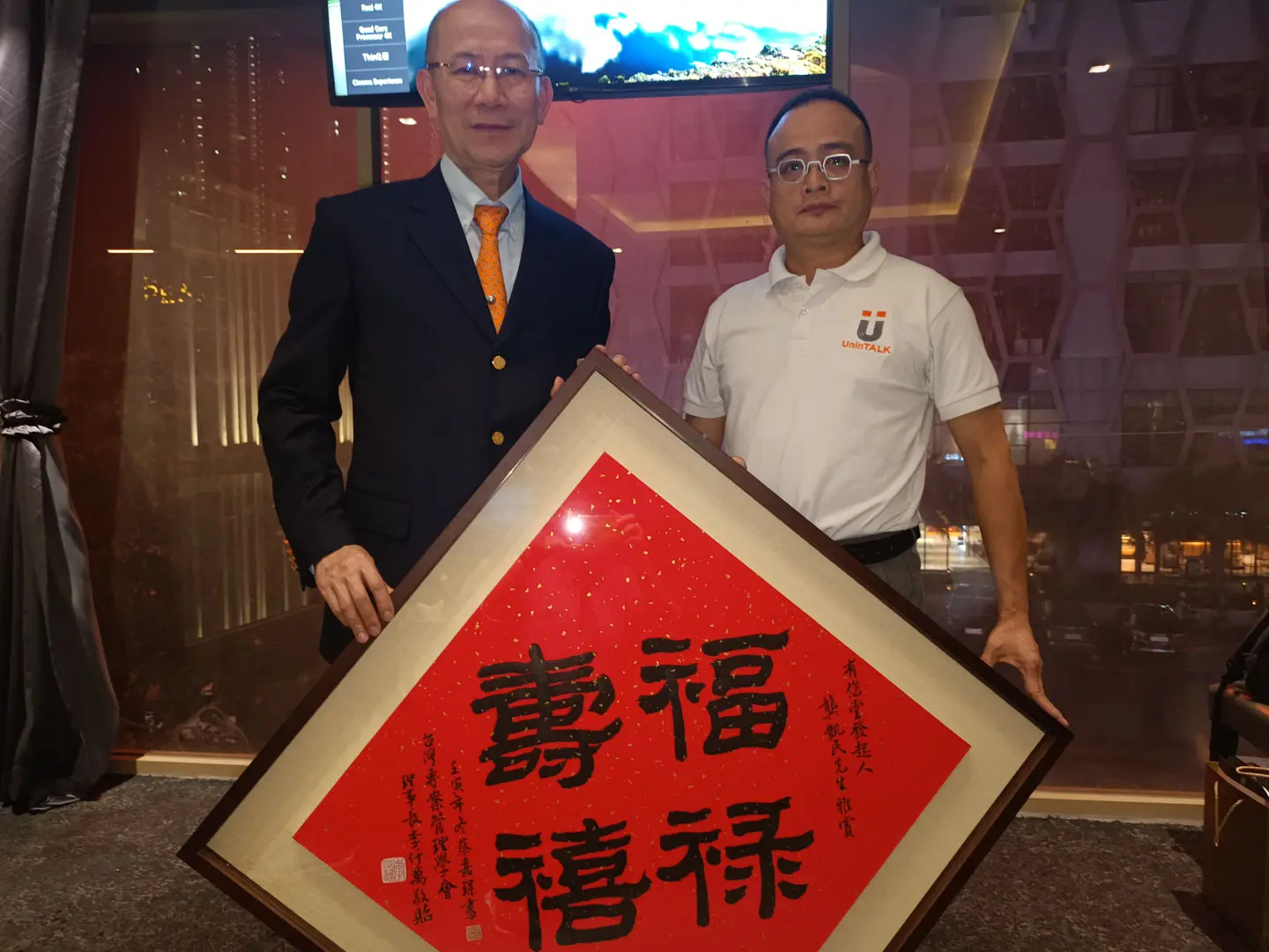 TPMA 理事長李仟萬 先生 致贈陳清貴老師墨竹予高雄市政府 陳其邁市長祝福市民平平安安幸幸福福,並進行多元交流及合影留念。