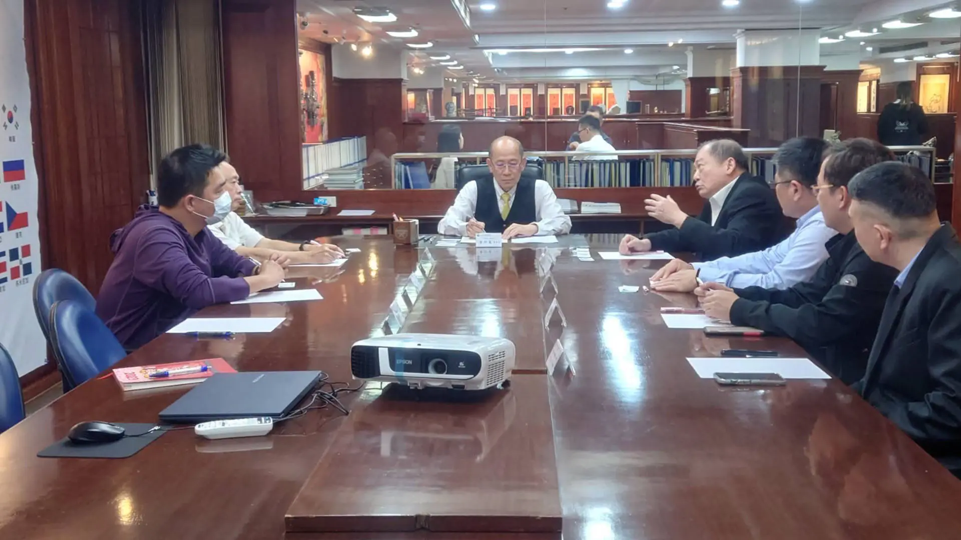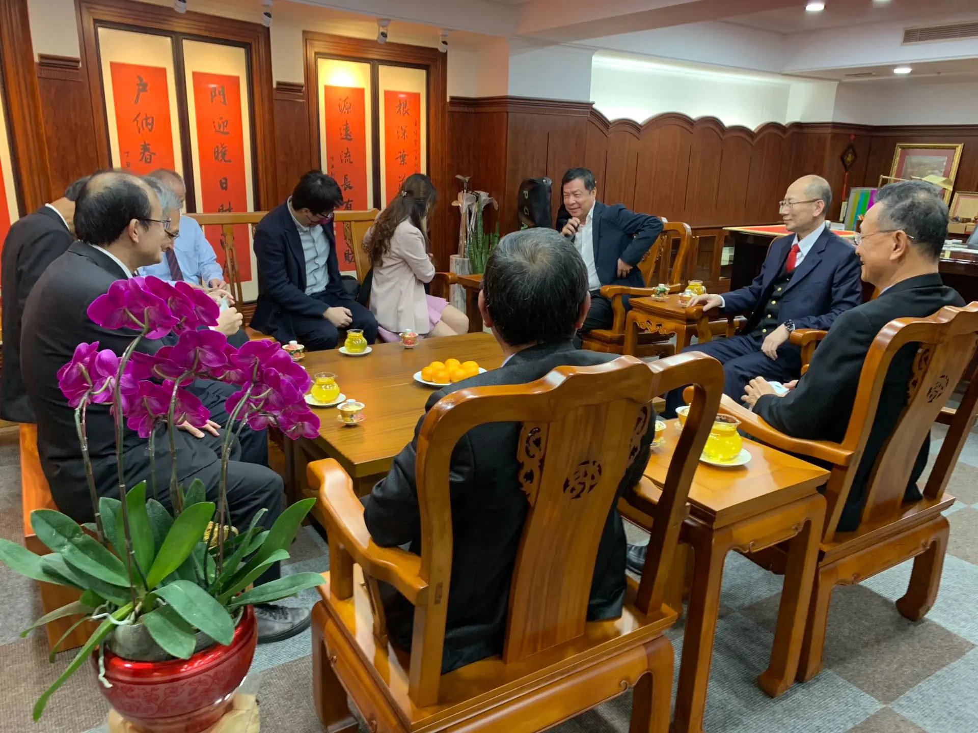 2022年3月24日 TPMA 理事長李仟萬 先生與高苑高級工商職業學校董事長余政憲及校長沈維哲和僑生代表共同商討如何協助僑生脫貧趨富專案。