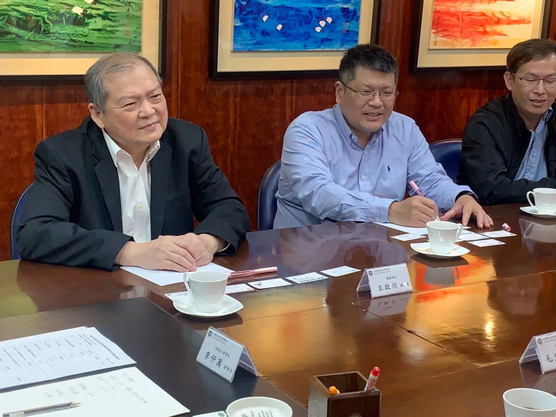 2022年3月22日 TPMA 理事長李仟萬 先生與台灣當代抽象畫藝術家陳譓婷(丞雨)和張正信先生,雙方多元交流並商討合作事宜。