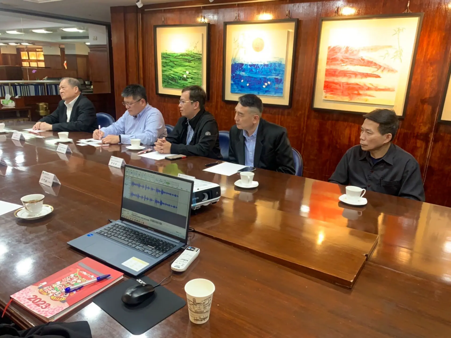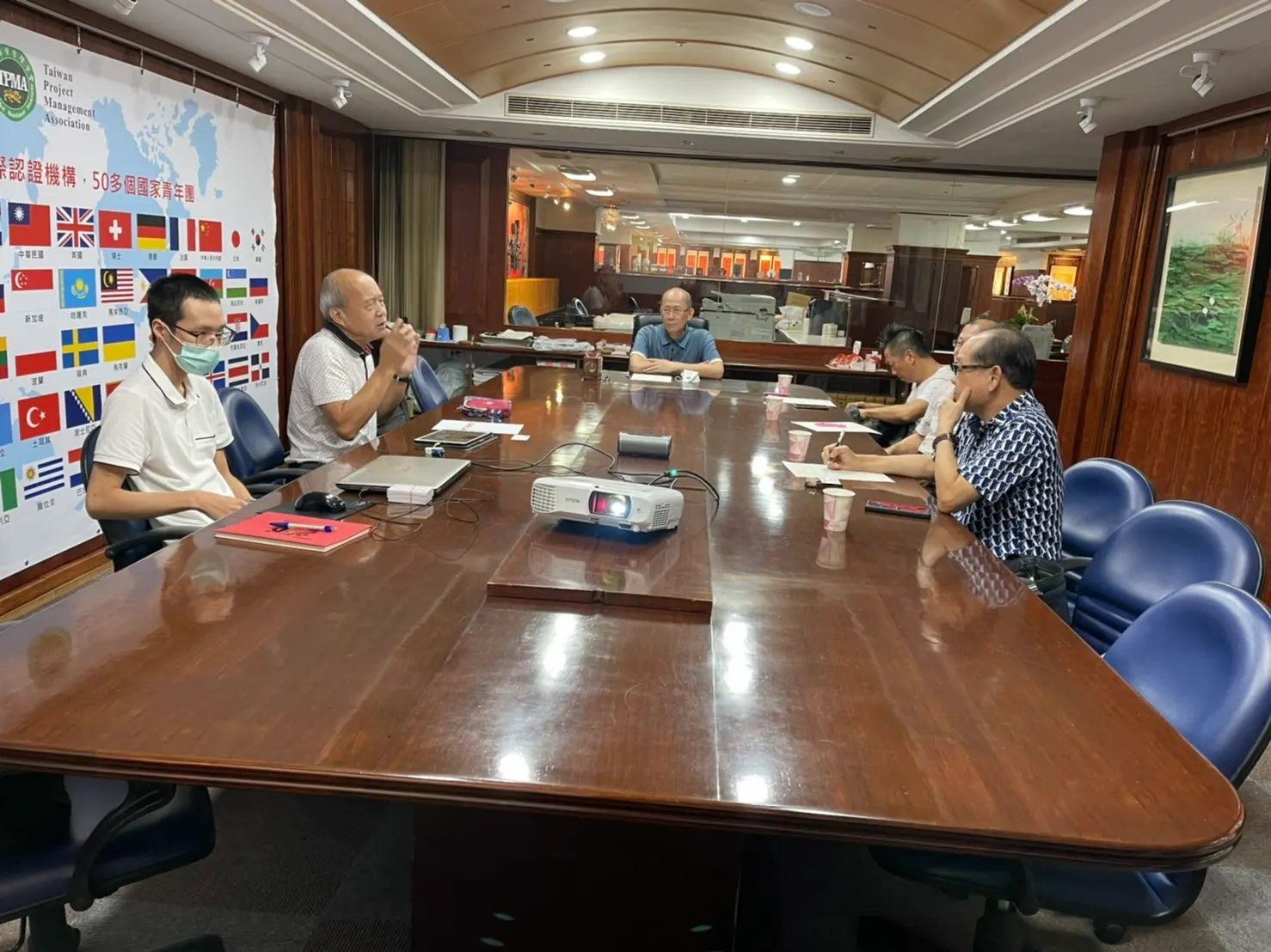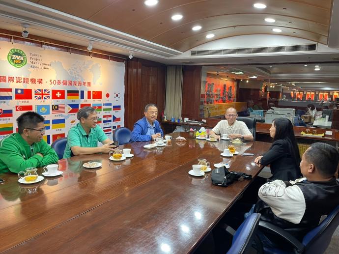 2022年9月7日 TPMA 理事長 李仟萬 先生邀請國立高雄科技大學 徐偉智教授、胡肇台博士、大高雄記者公會 吳門鍵秘書長、艾爾文森設計公司 林楚軒設計師與 TPMA 專案經理 謝冠緯討論易經風水專案管理課程及推廣相關事宜。
