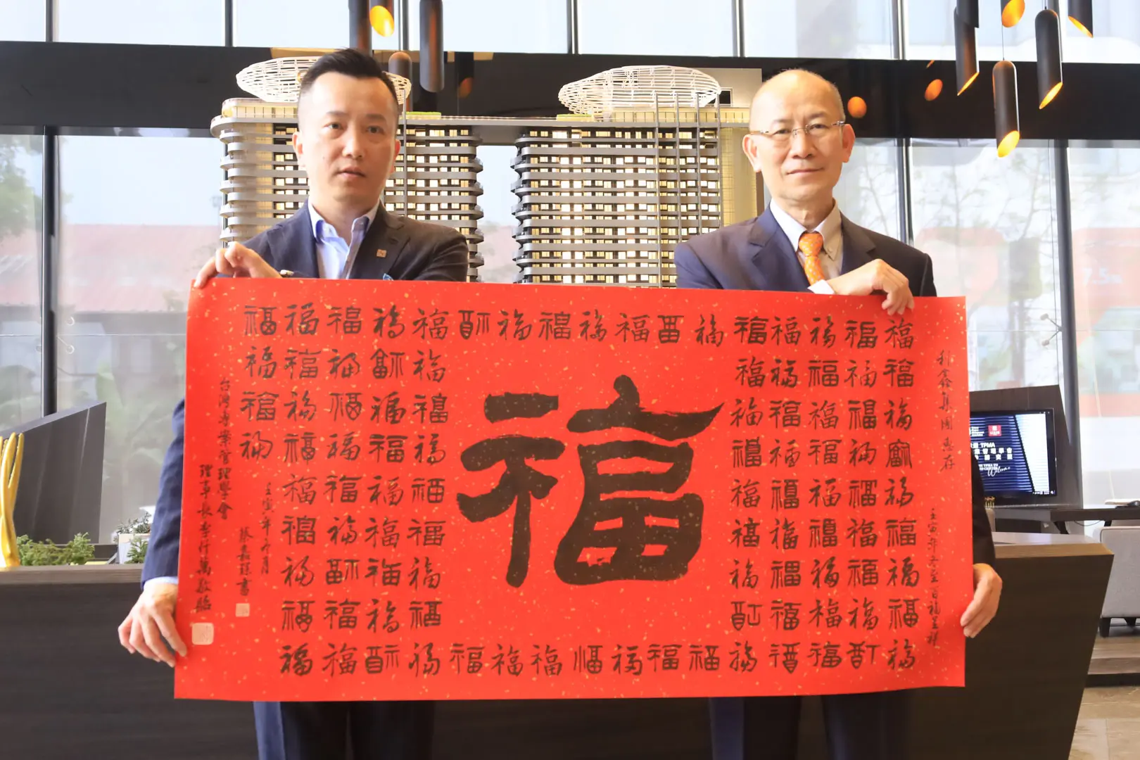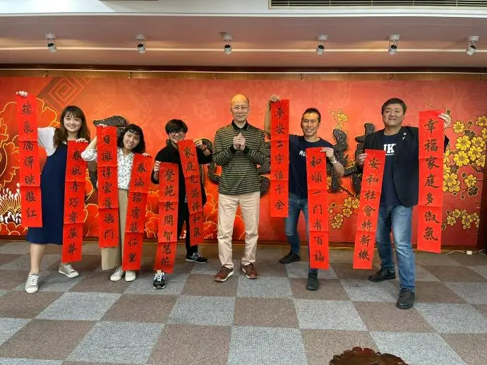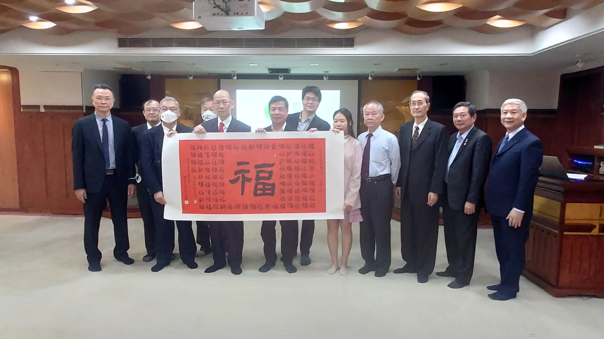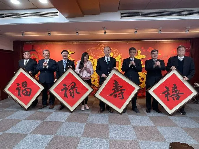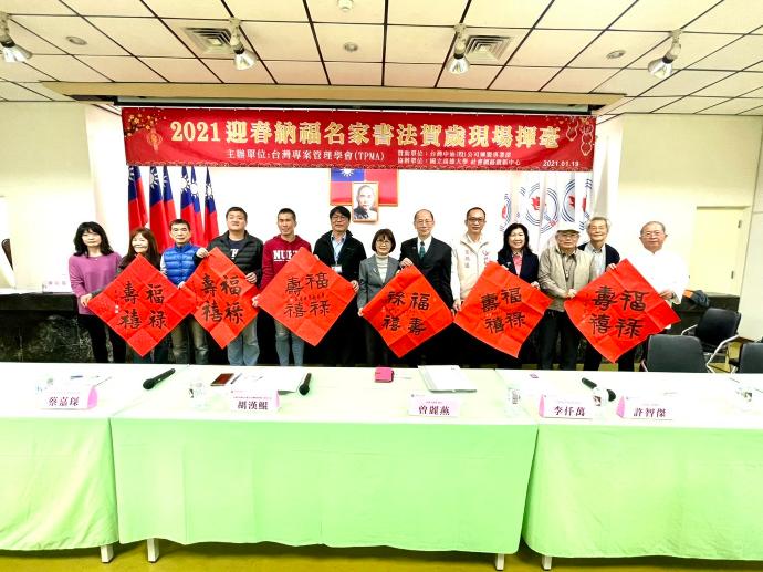 2021年01月03日 TPMA 理事長李仟萬 先生 率學會同仁與台灣中油合辦2021迎春納福名家書法賀歲現場揮毫並合影留念。