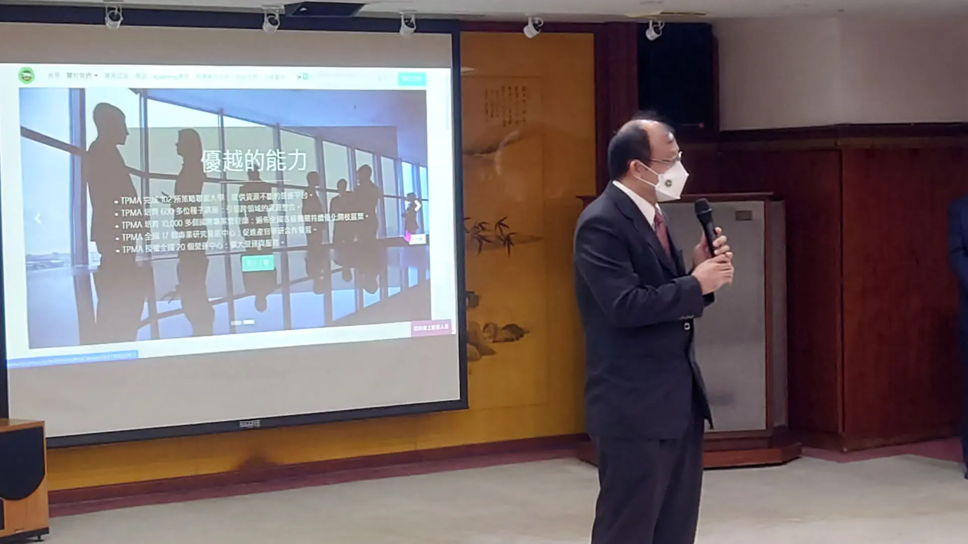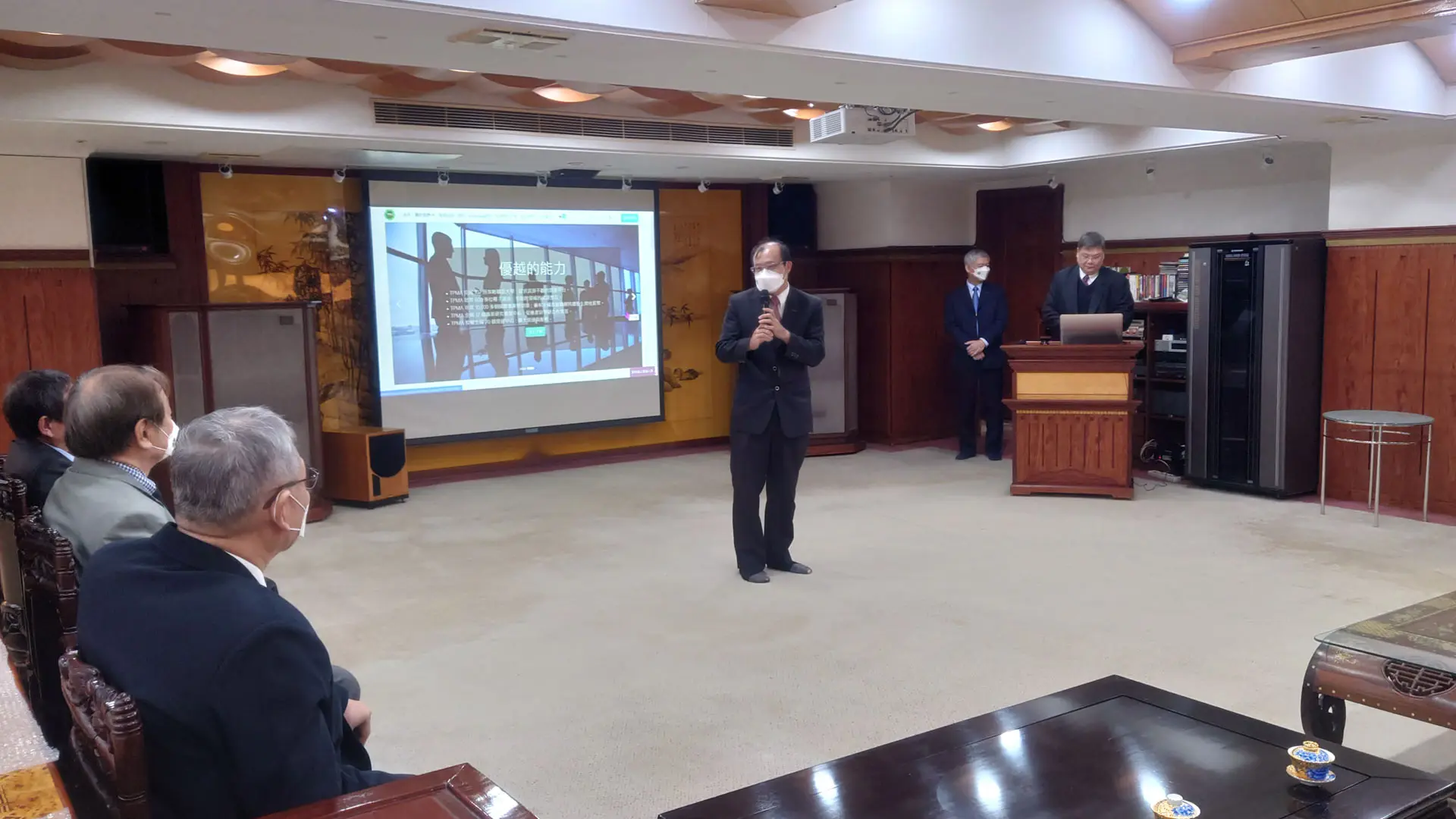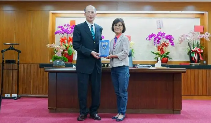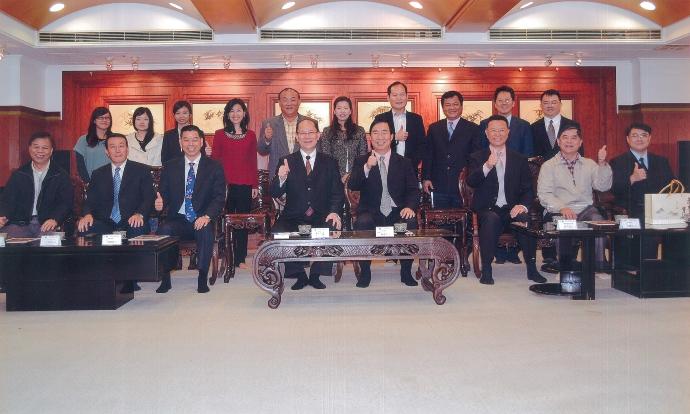 2022年1月21日 TPMA 理事長李仟萬 先生與朝陽科技大學鄭道明校長與賴奎魁副校長共同商討雙方合作事宜。