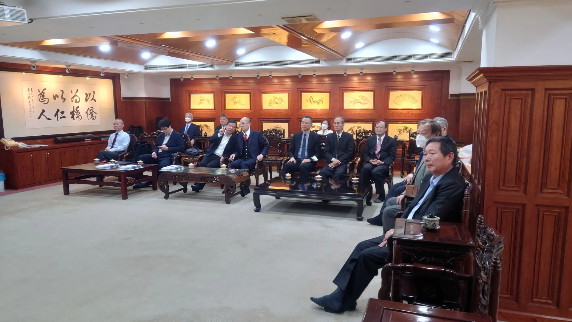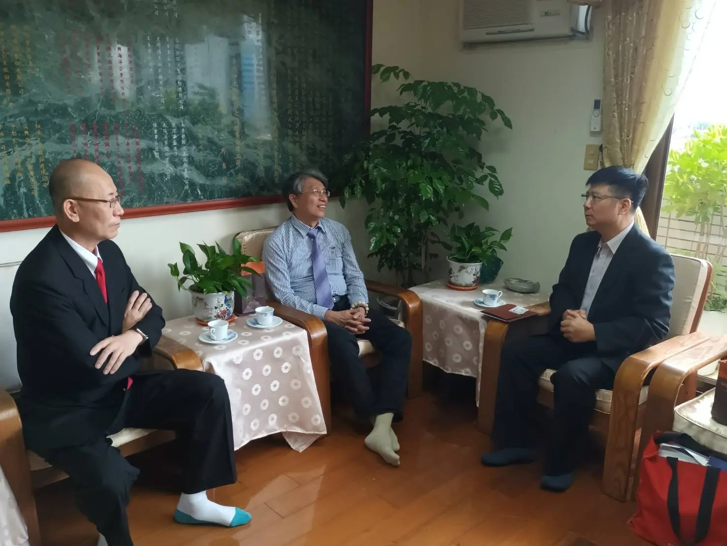 2022年4月11日 TPMA 理事長李仟萬 先生與TPMA尊榮書法家蔡嘉琛老師、于玉萍老師與林壽泉老師藝術交流。