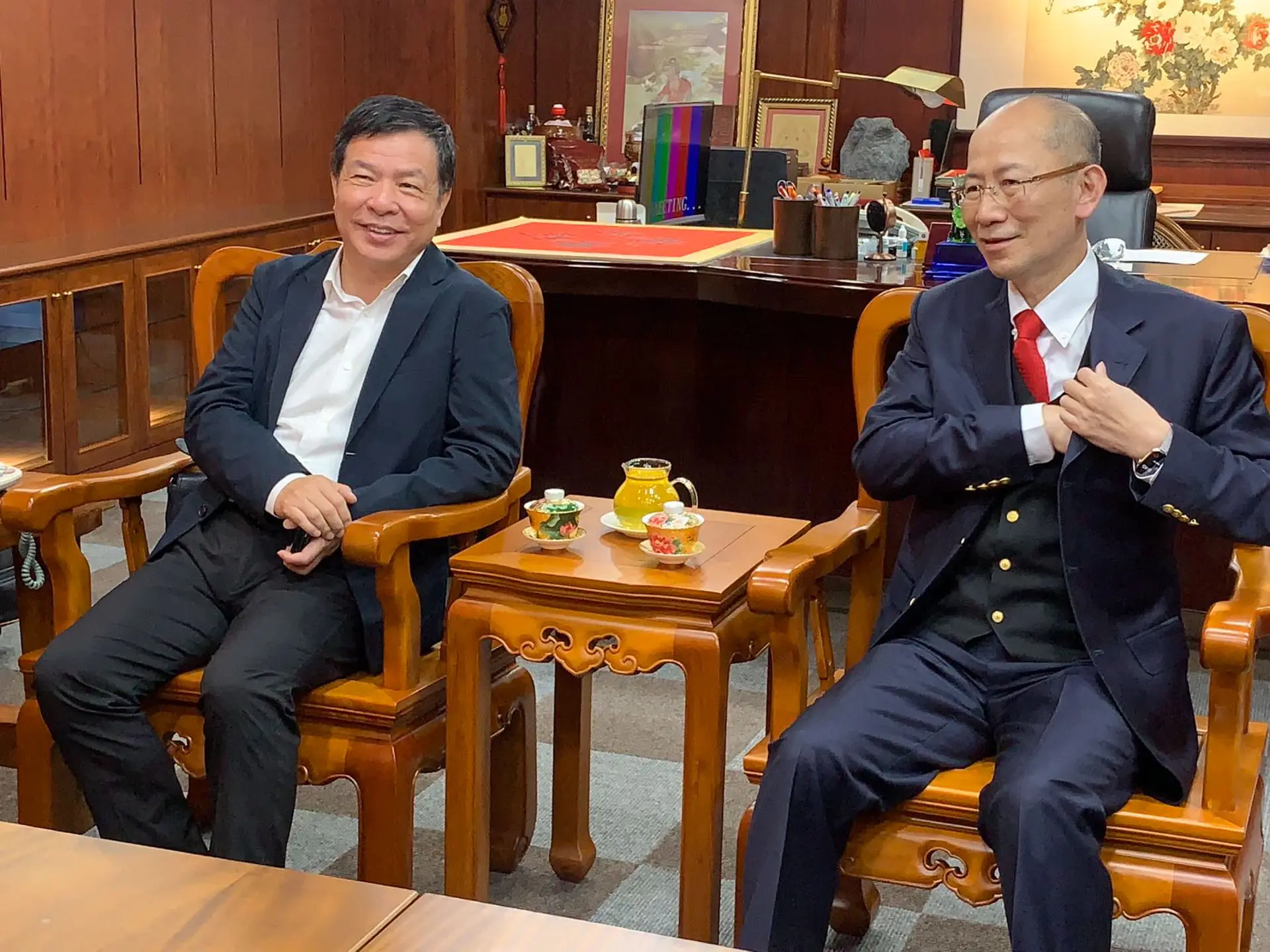 2022年2月17日 TPMA 理事長李仟萬 先生與高苑高級工商職業學校董事長余政憲共同商討如何幫助外籍學生脫貧趨富。