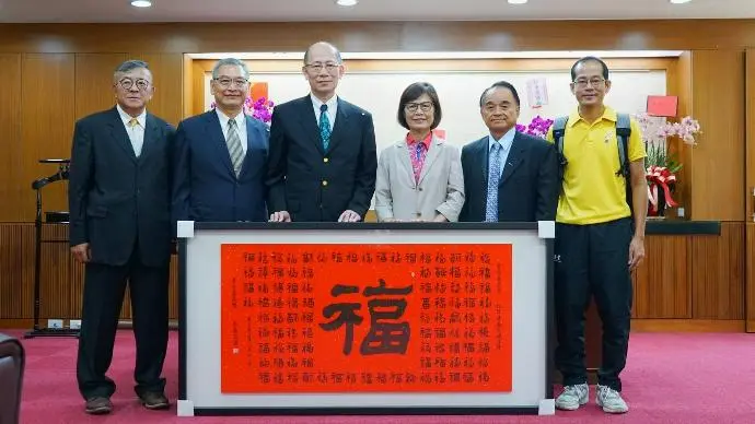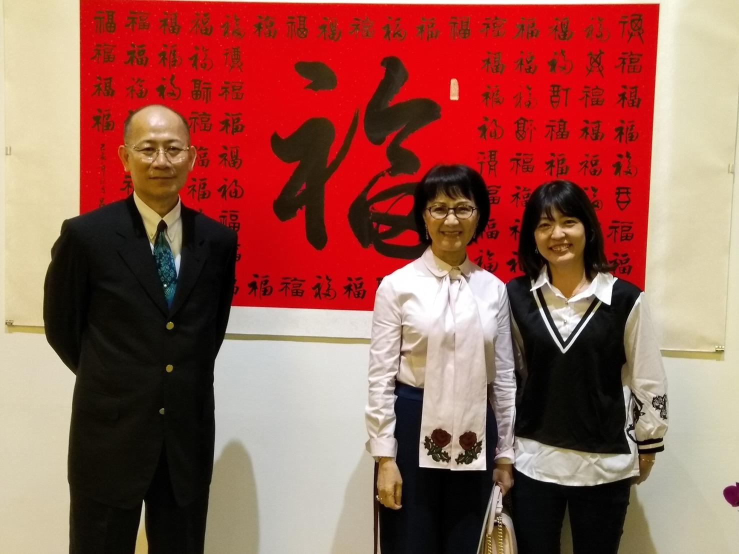 TPMA 理事長李仟萬 先生 與龍華科技大學林如貞副校長及名書法家呂佳玲老師進行多元交流並合影留念。