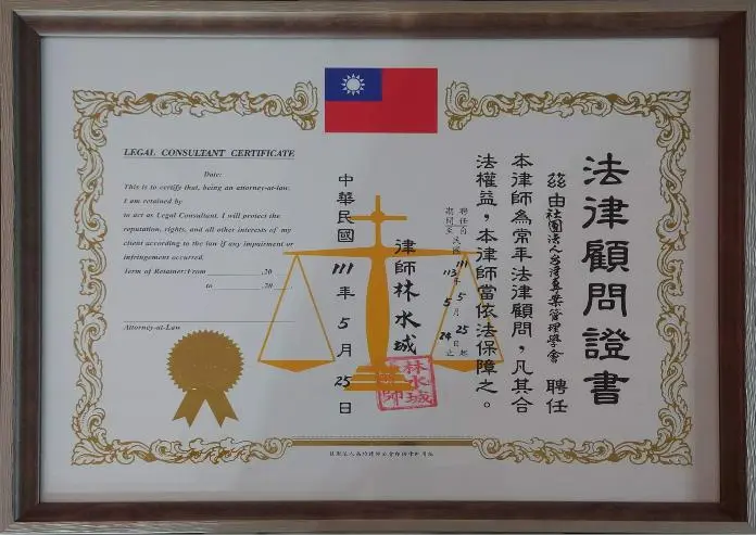 2022年6月14日 TPMA理事長李仟萬 先生 聘請 林水城大律師為本學會常年法律顧問,以保障本學會權益。