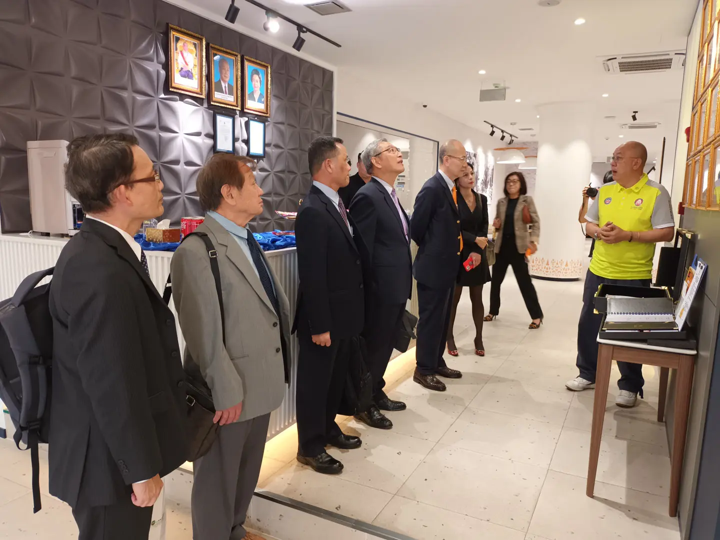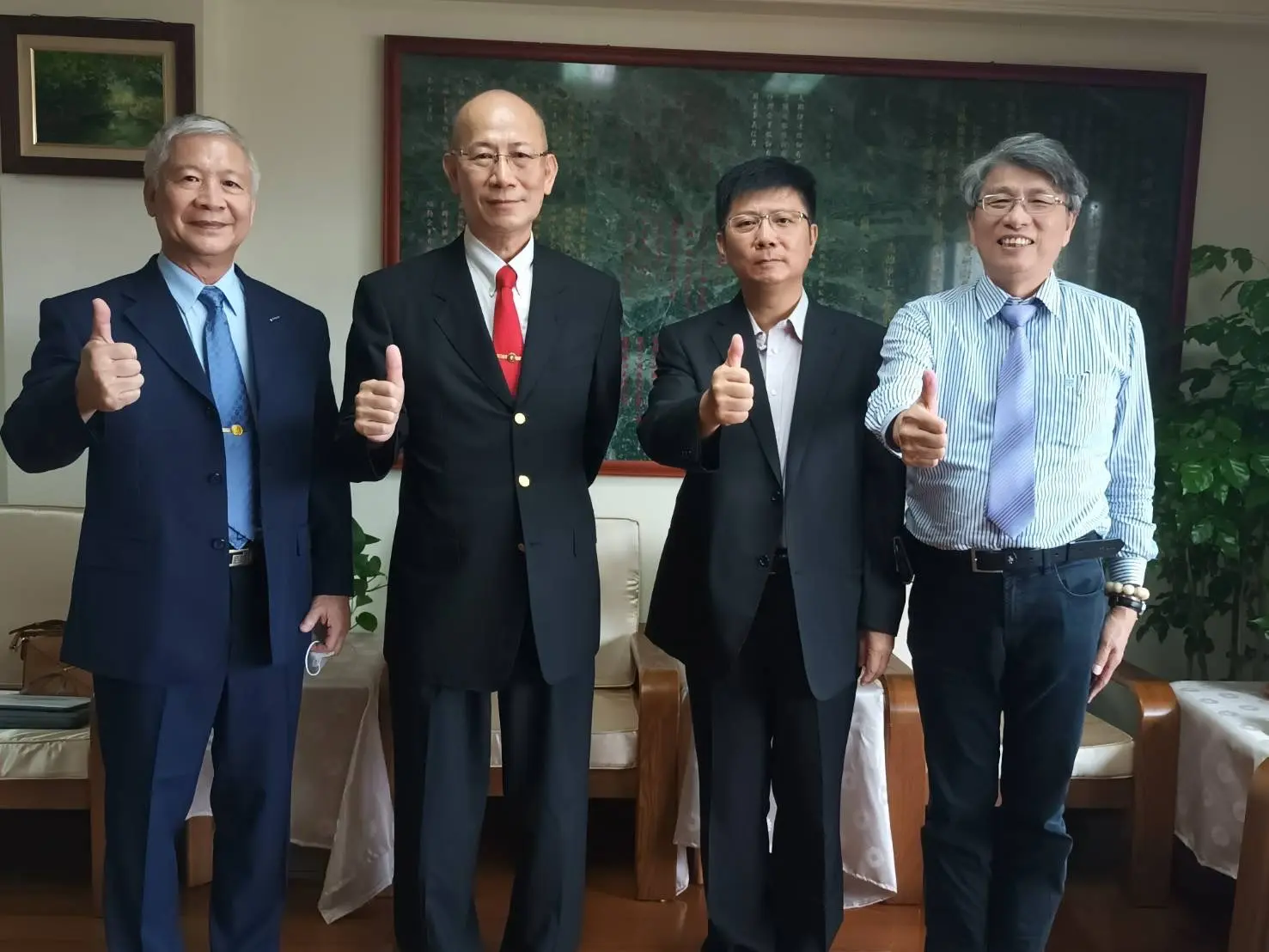 2022年7月16日 TPMA 理事長李仟萬 先生接待來訪貴賓 民進黨宗教委員會 余政憲總召集人、 中華民國國安會 胡木源副祕書長、高雄市警察局刑警大隊偵七隊 胡斌隊長及台南市體育總會射擊委員會主任委員 蔡岳勳先生,共同探討合作事宜,合影留念。