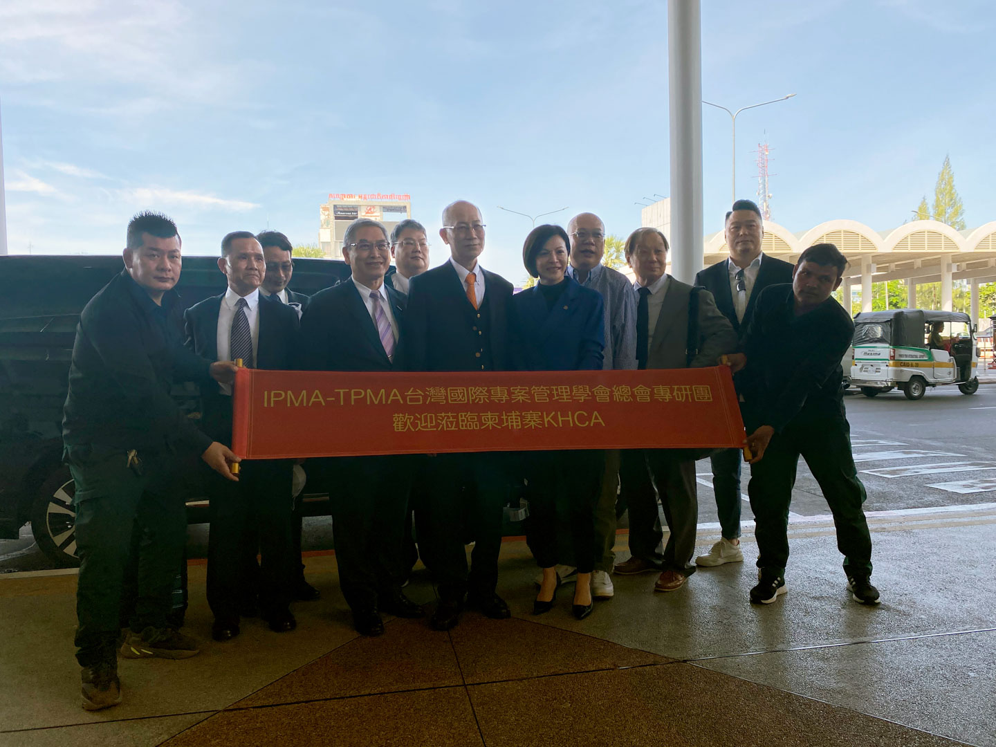 2023年1月3日 TPMA 理事長 李仟萬先生及隨行專家造訪柬埔寨,在柬埔寨柬家園慈善會 (KHCA) 熱情歡迎下於柬埔寨機場合影留念