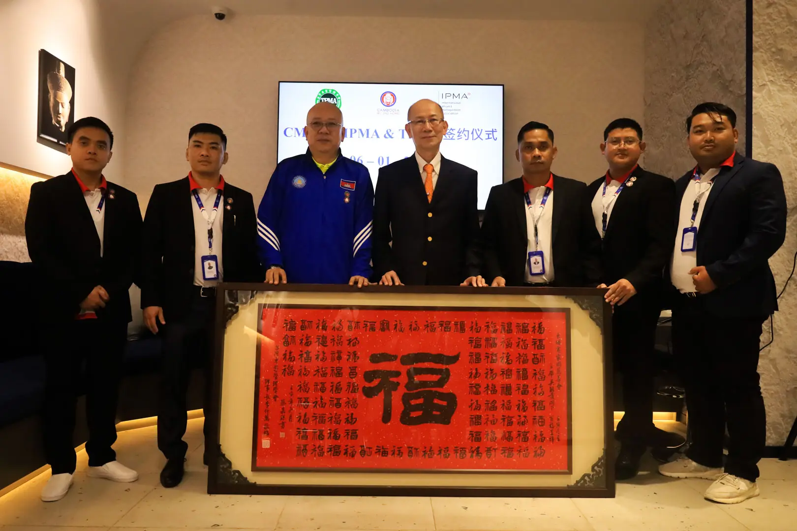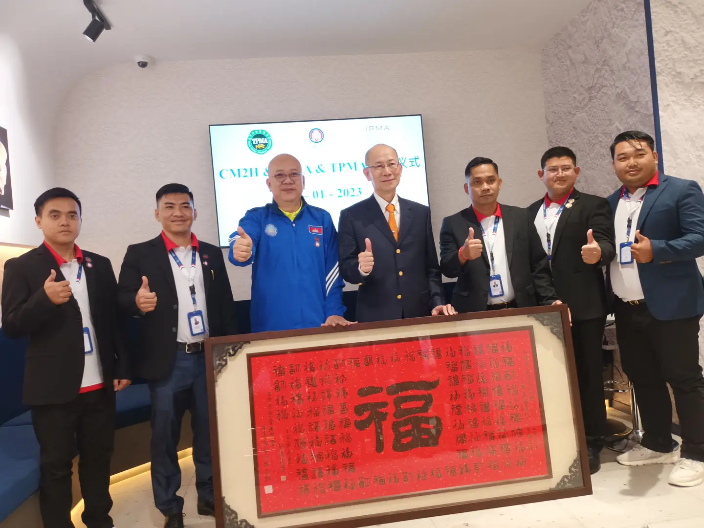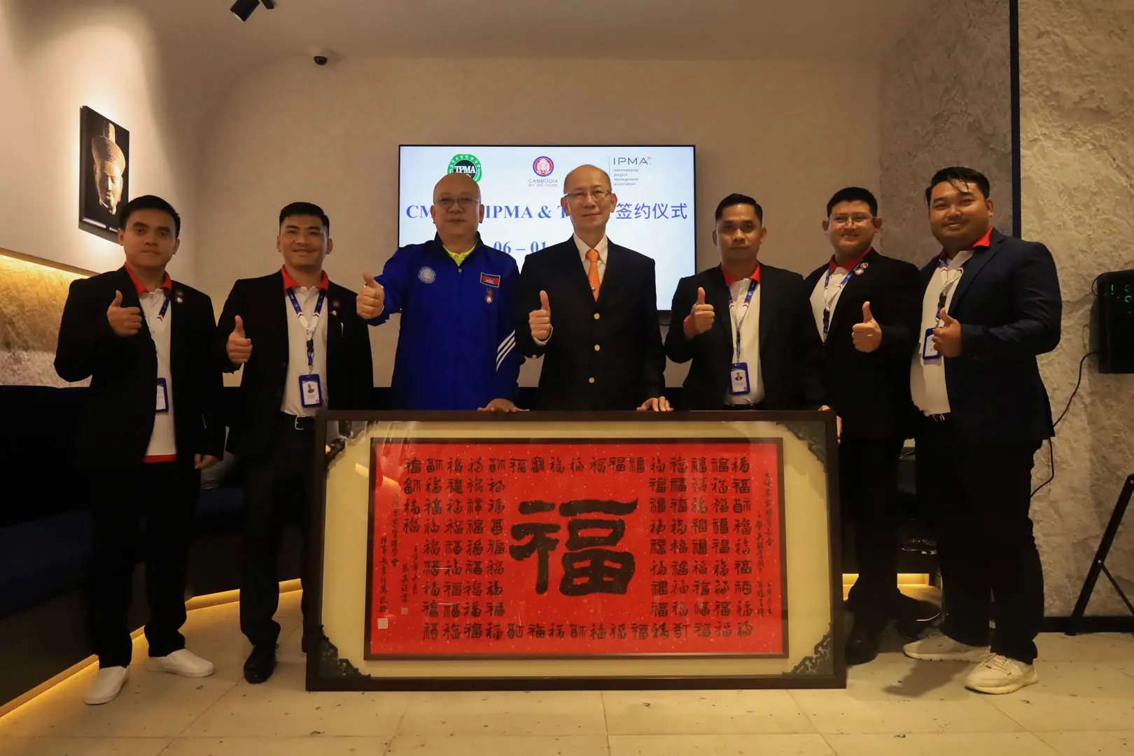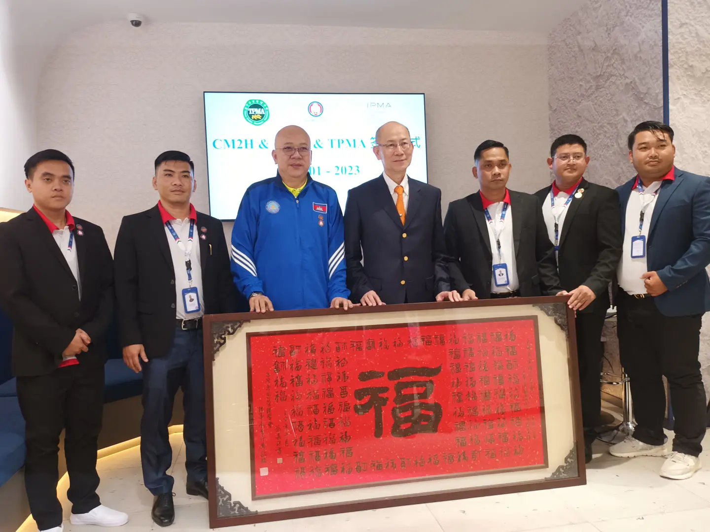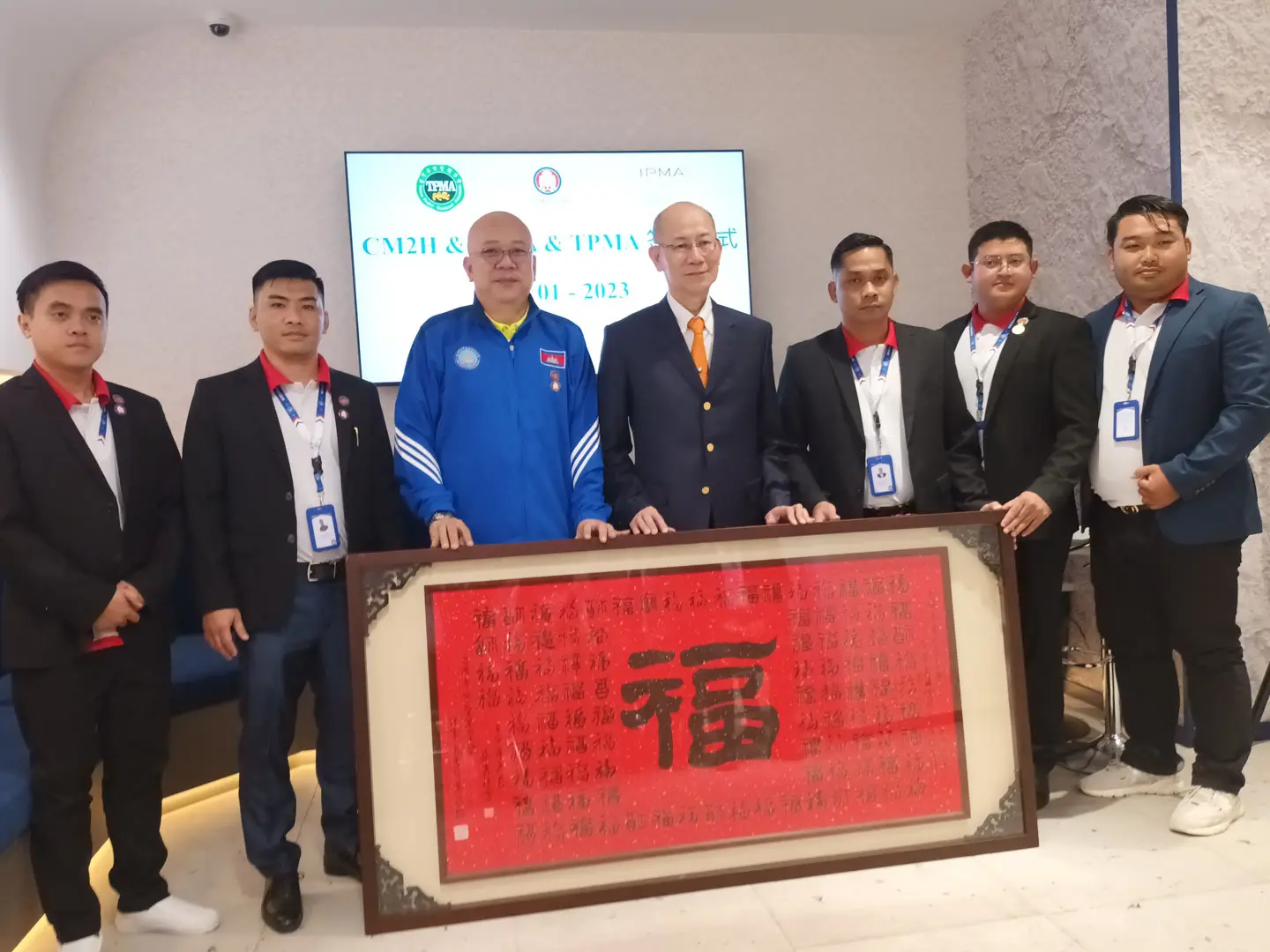 2023年1月6日 TPMA 理事長 李仟萬先生及隨行專家與柬家園慈善會(KHCA) 鄭國良副祕書長及柬家園計畫(CM2H) 吳縉奇財務長等相關人員,共同為「IPMA-TPMA 柬埔寨服務處」揭牌運作。