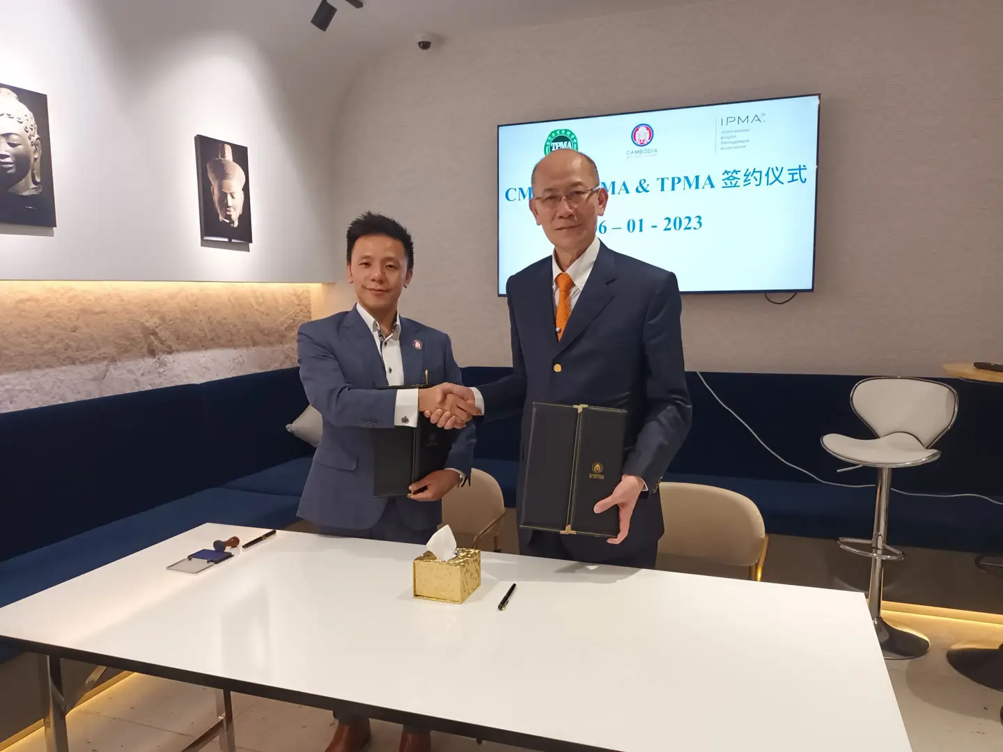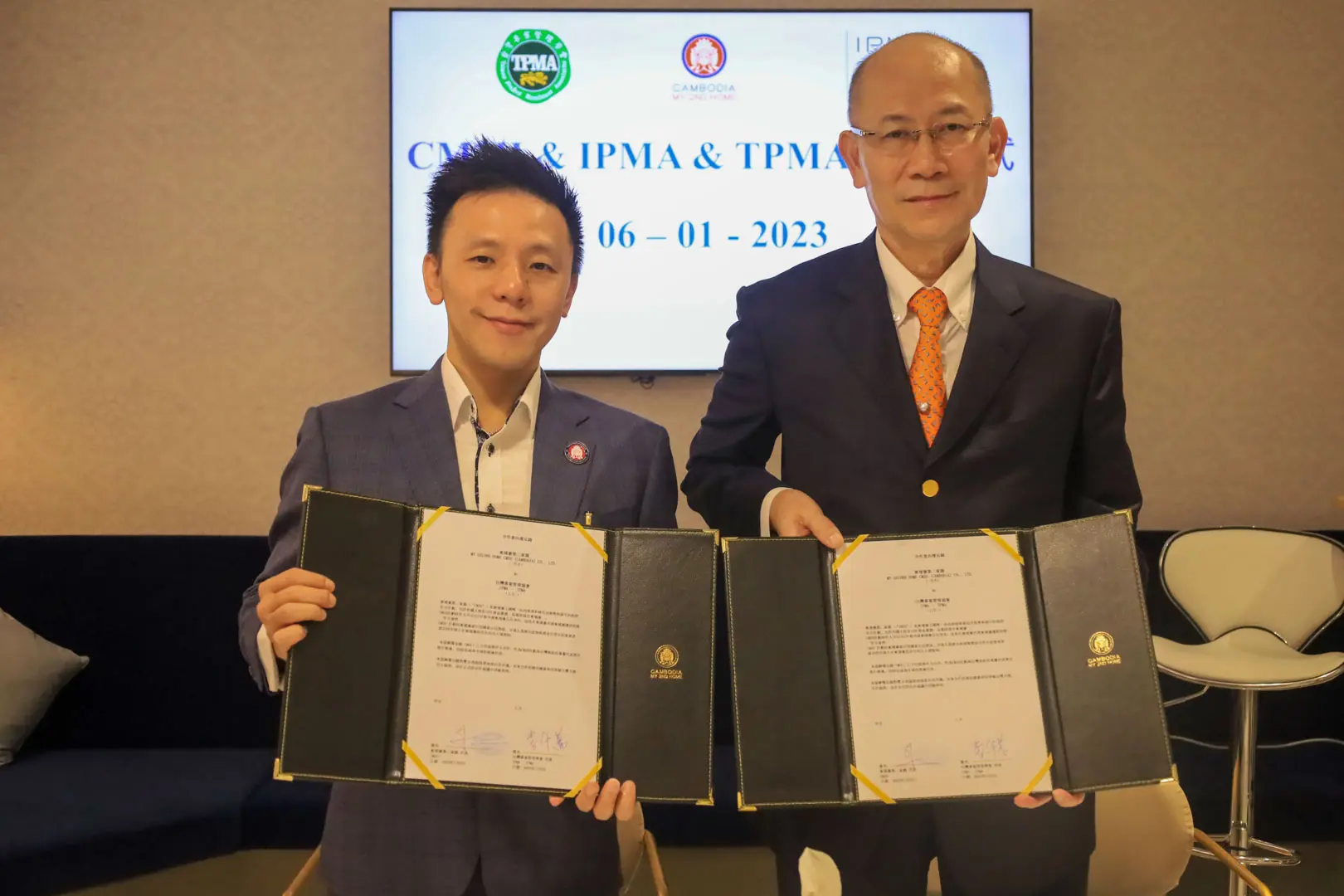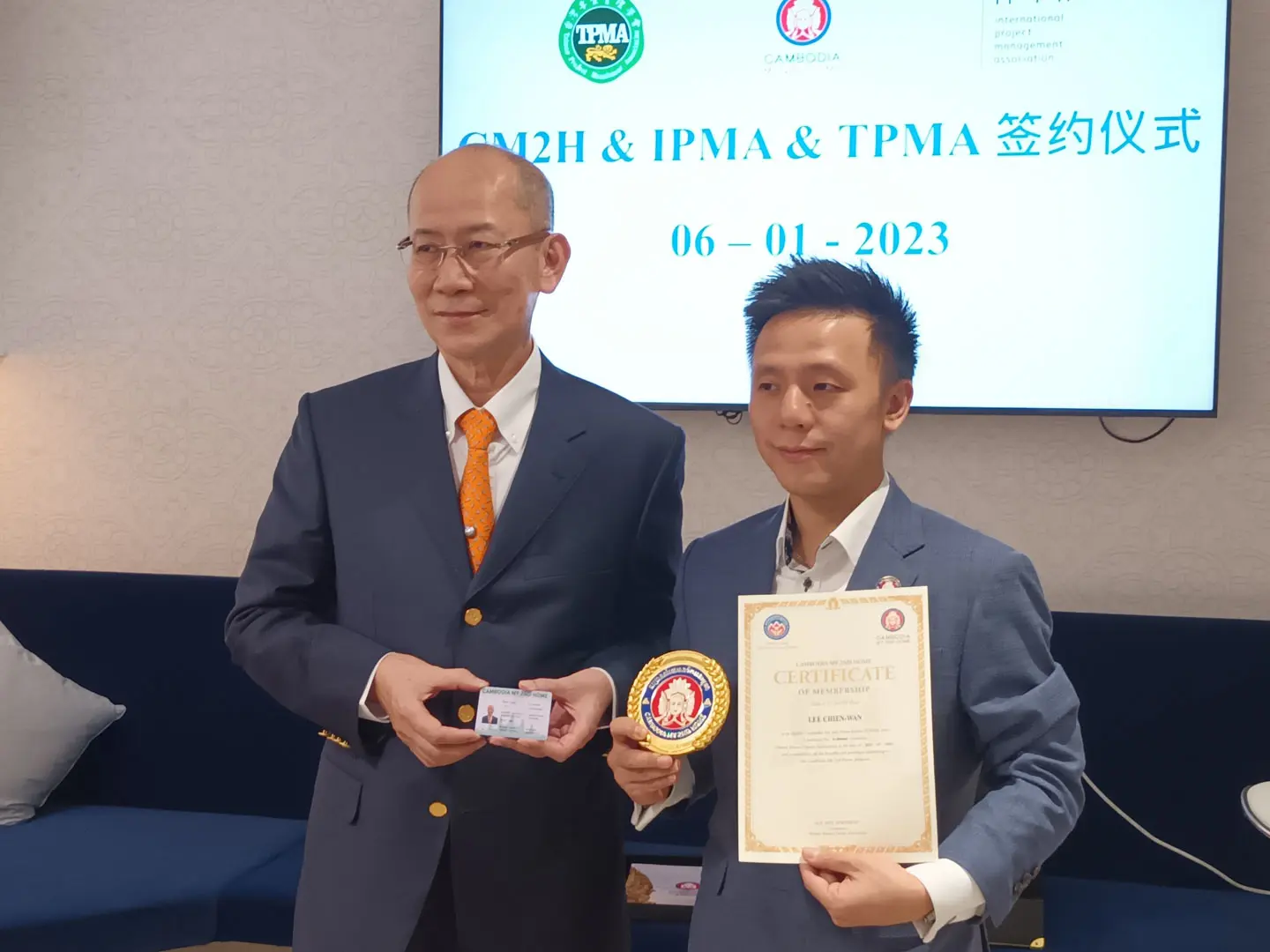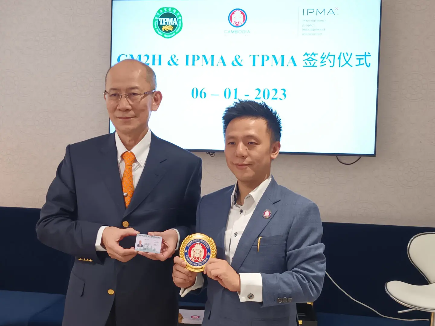 2023年1月6日 TPMA 理事長 李仟萬先生及隨行專家與柬家園慈善會(KHCA) 鄭國良副祕書長及柬家園計畫(CM2H) 吳縉奇財務長等相關人員,共同為「IPMA-TPMA 柬埔寨服務處」揭牌運作。