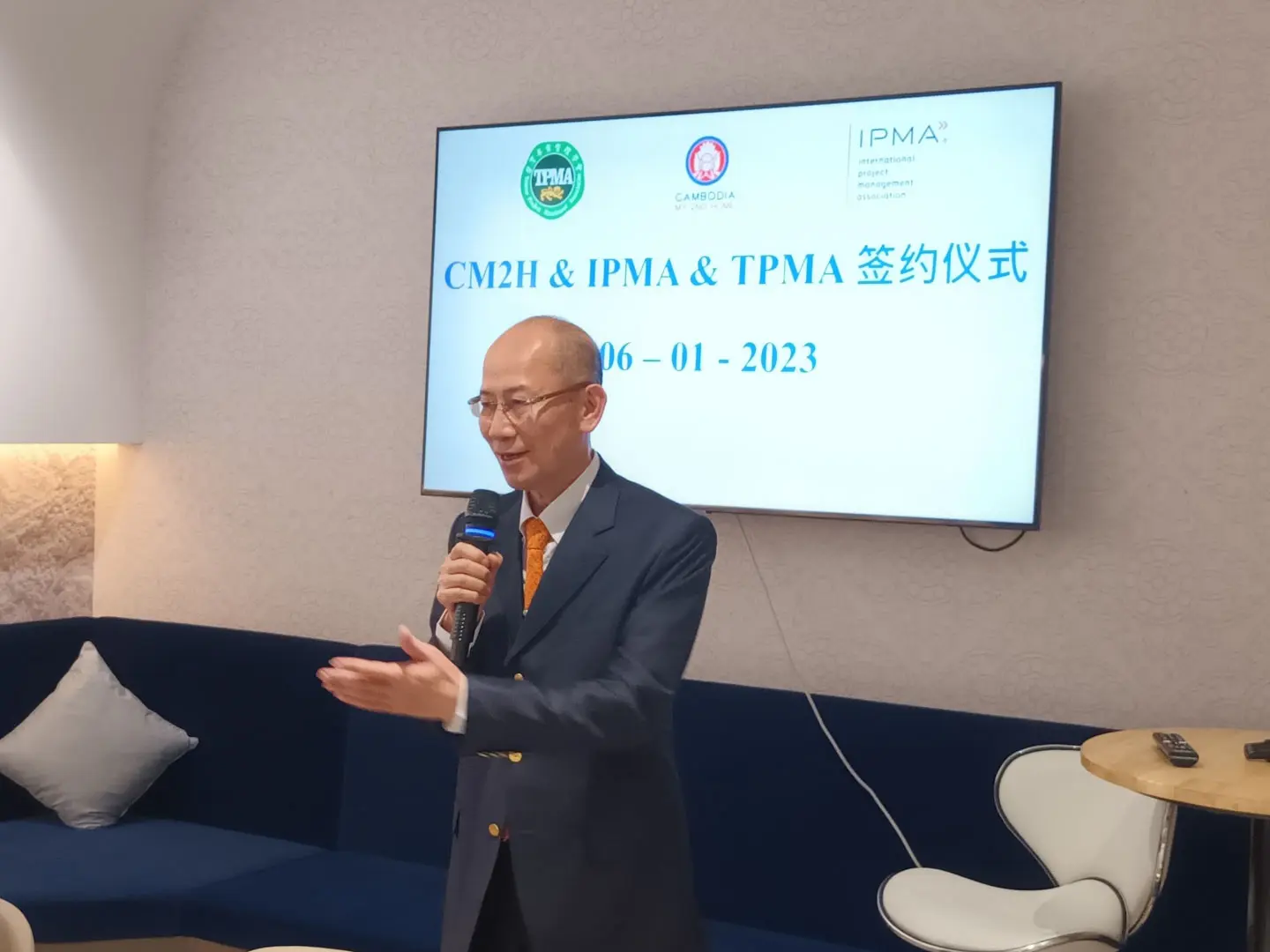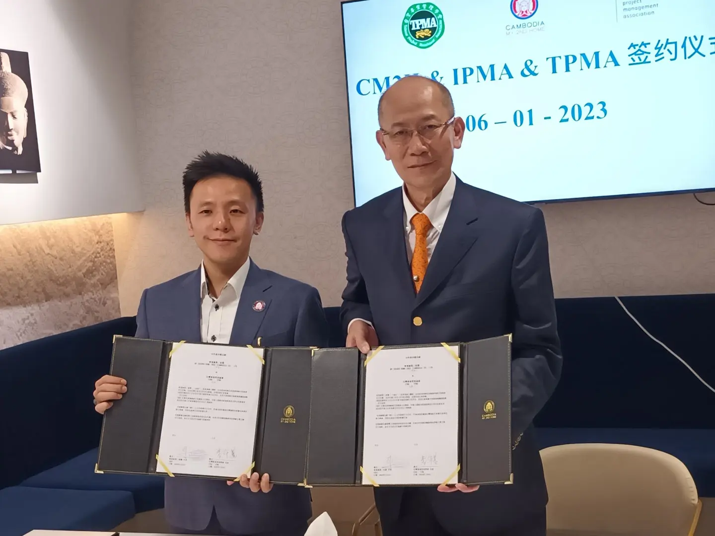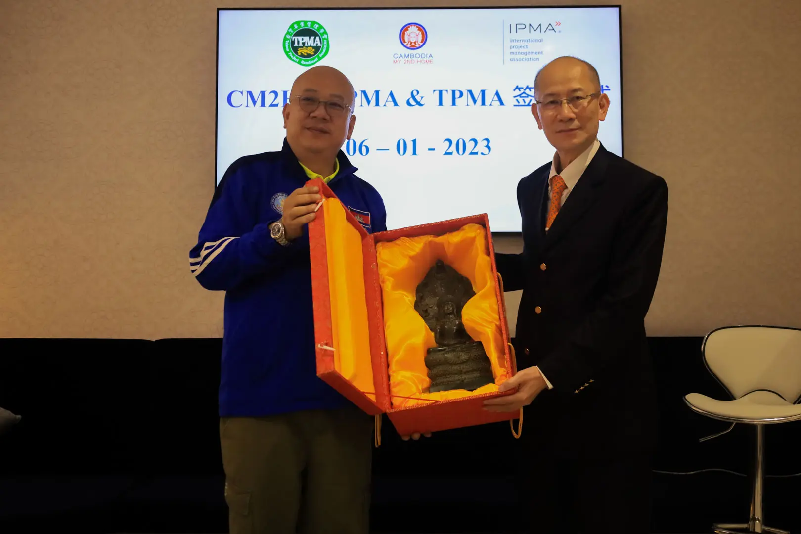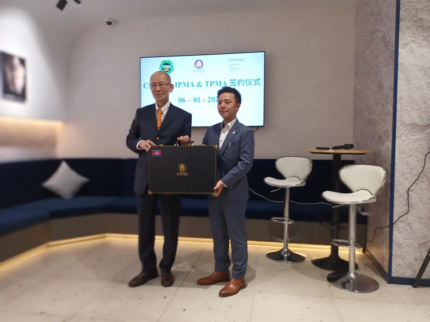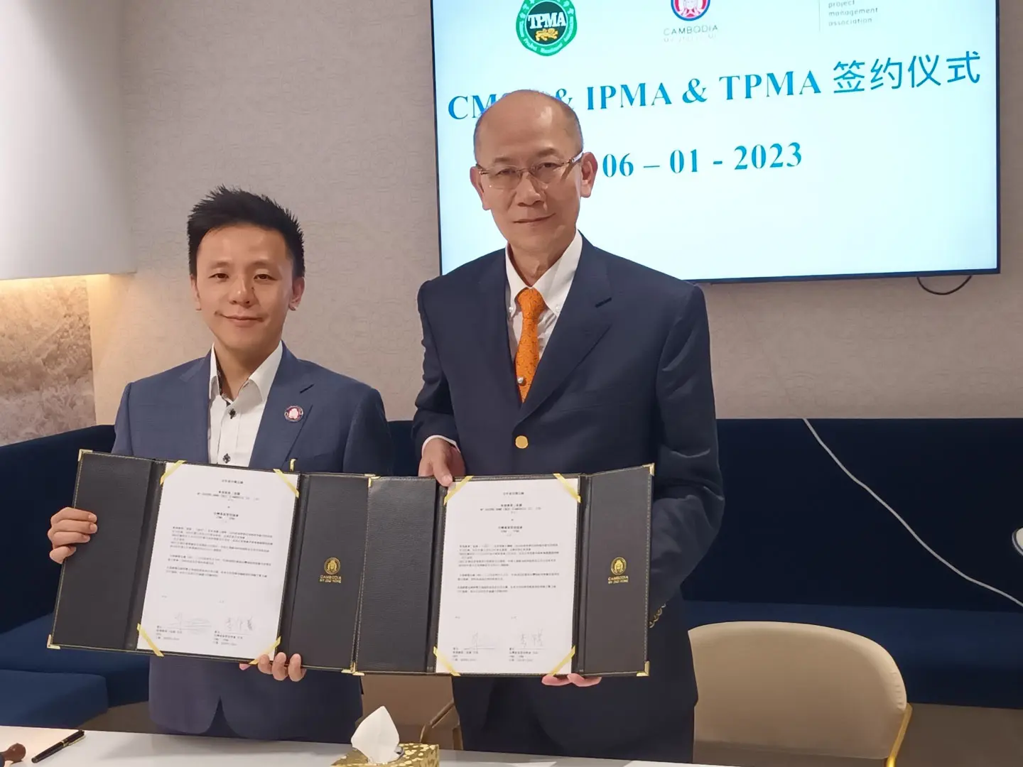 2023年1月6日 TPMA 理事長 李仟萬先生及隨行專家與柬家園慈善會(KHCA) 鄭國良副祕書長及柬家園計畫(CM2H) 吳縉奇財務長等相關人員,共同為「IPMA-TPMA 柬埔寨服務處」揭牌運作。