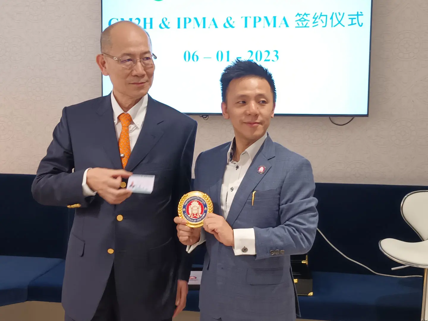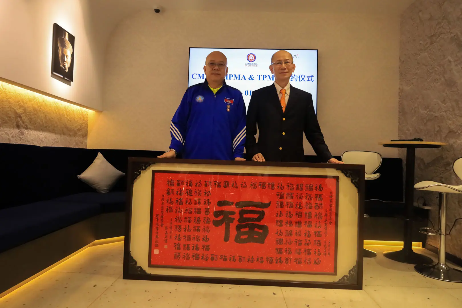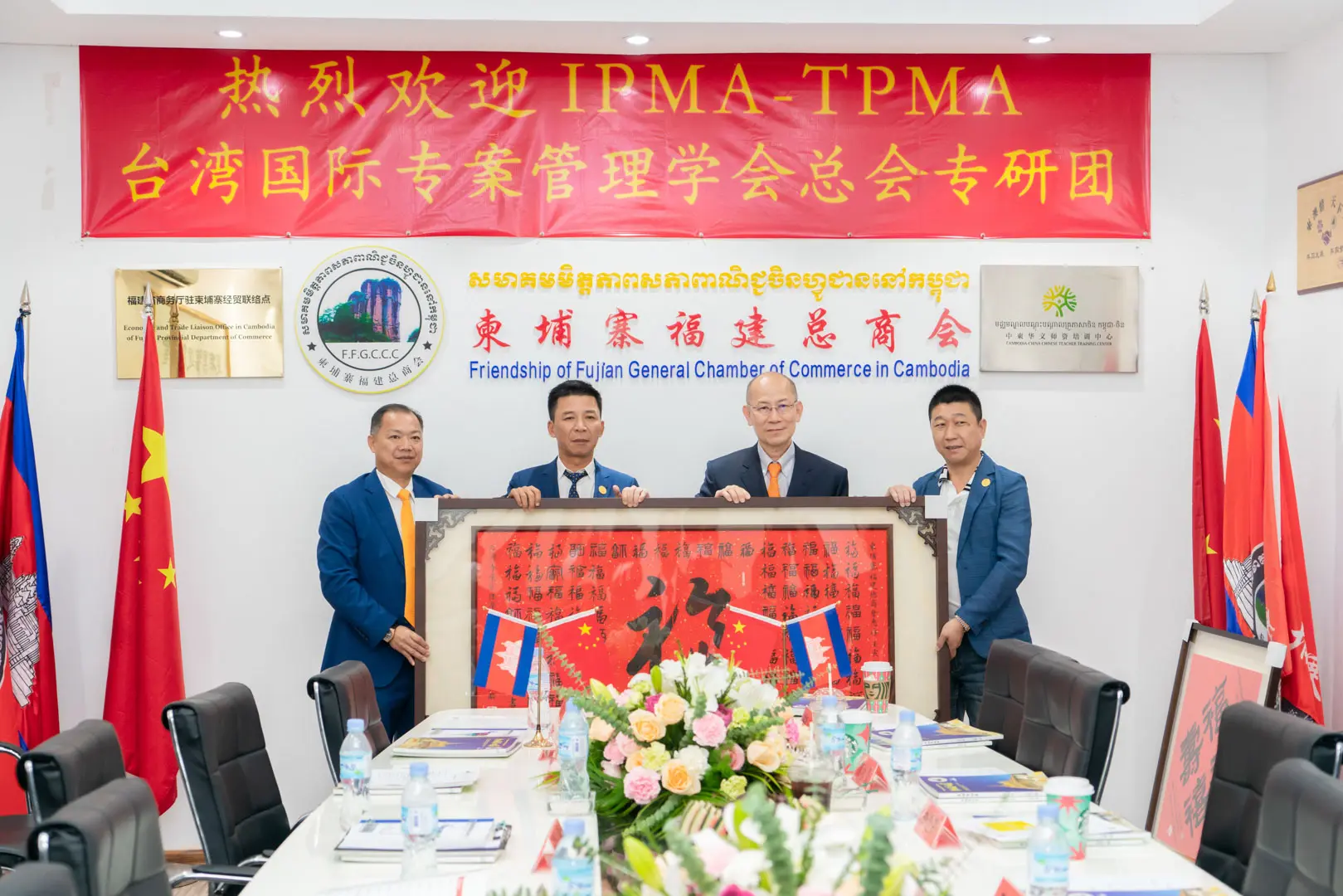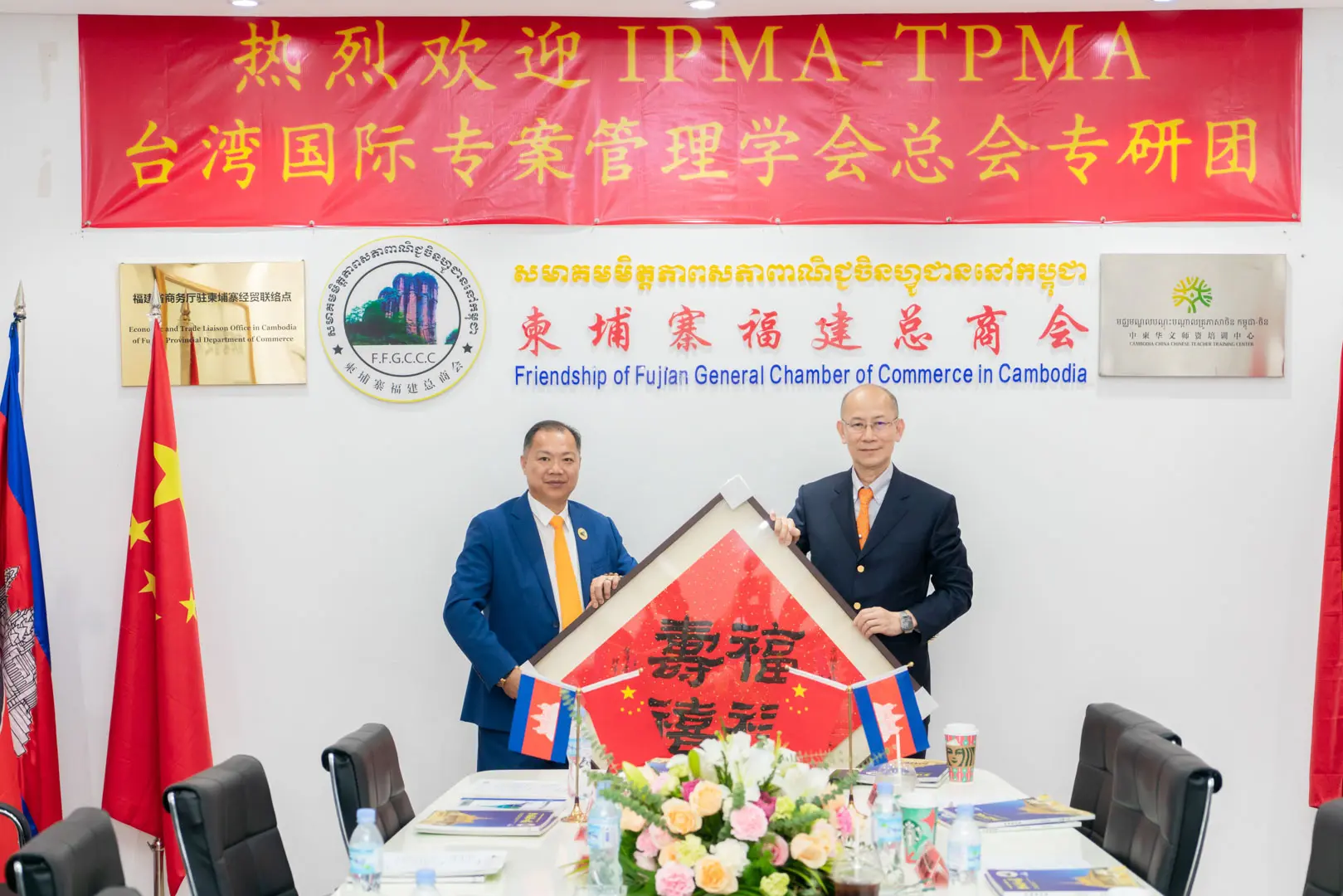 2023年1月4日 TPMA 理事長 李仟萬先生及隨行專家參訪柬埔寨福建總商會,並與柬埔寨福建總商會 邱國興會長討論合作事宜及共同合影留念。