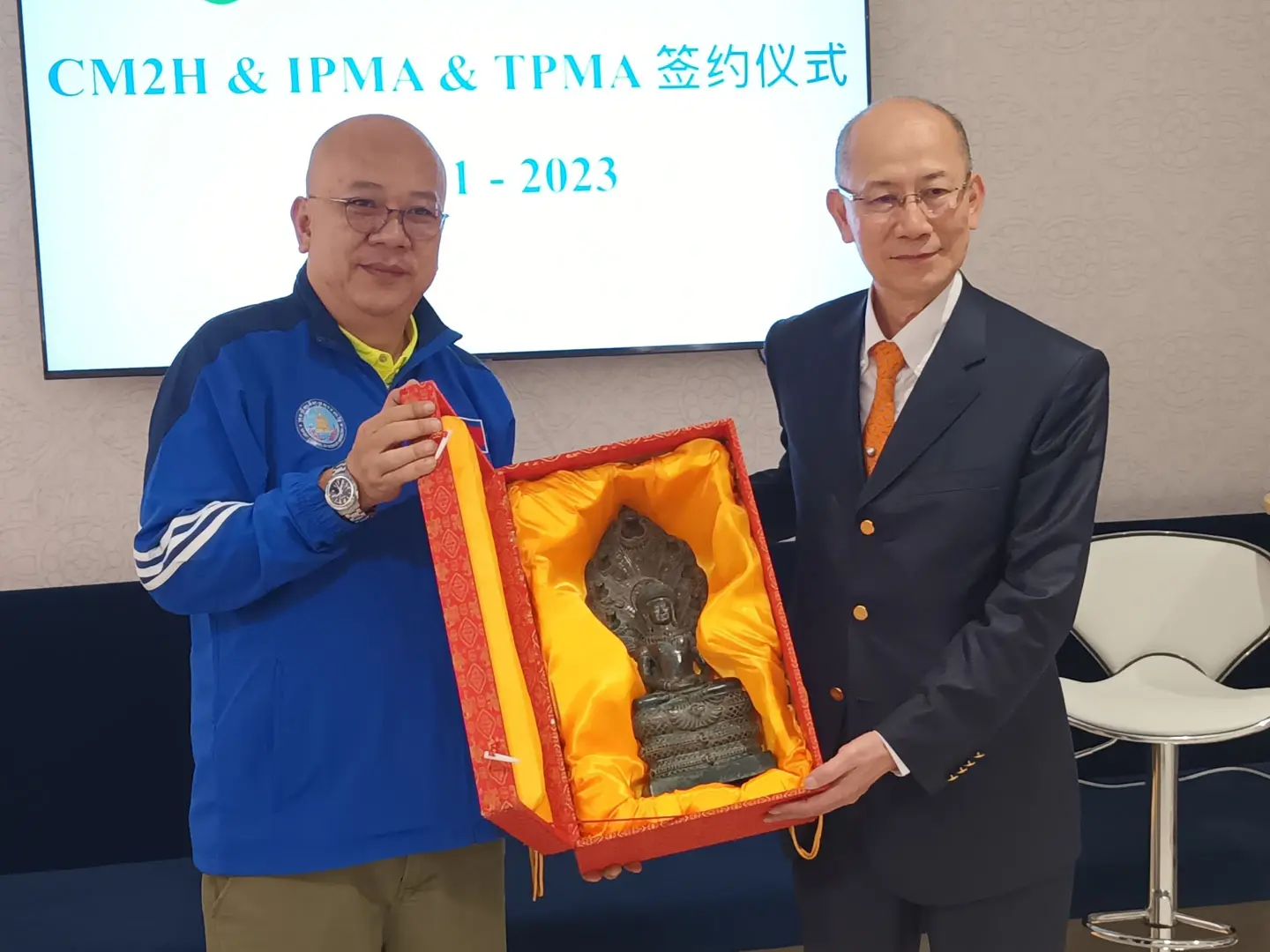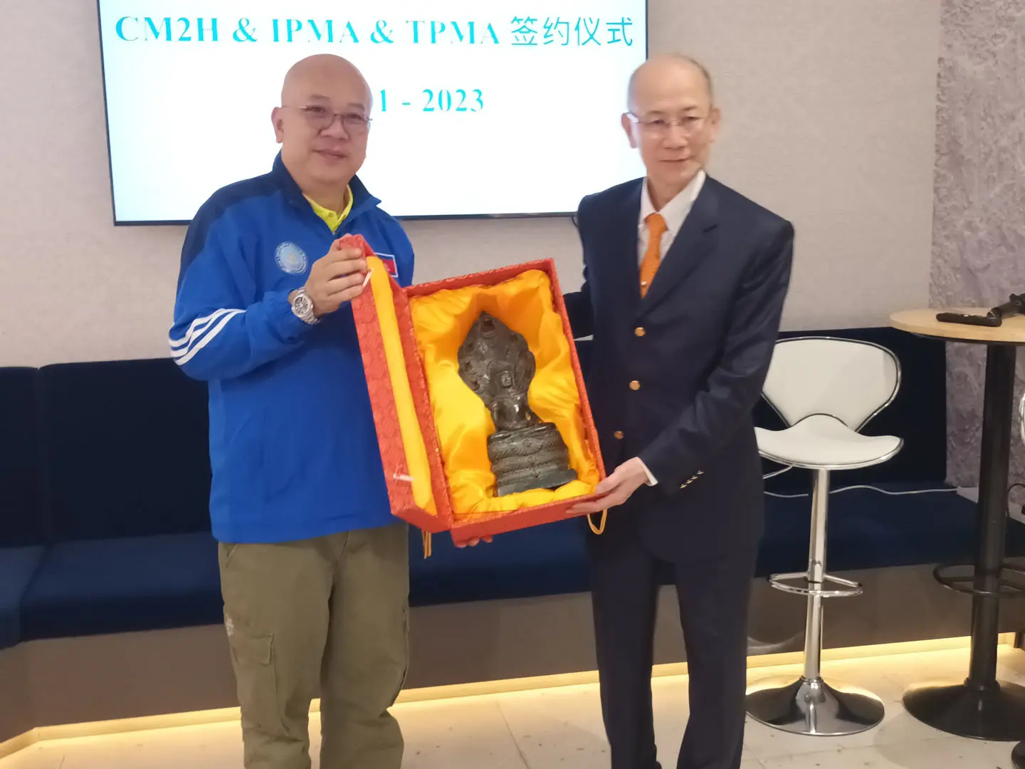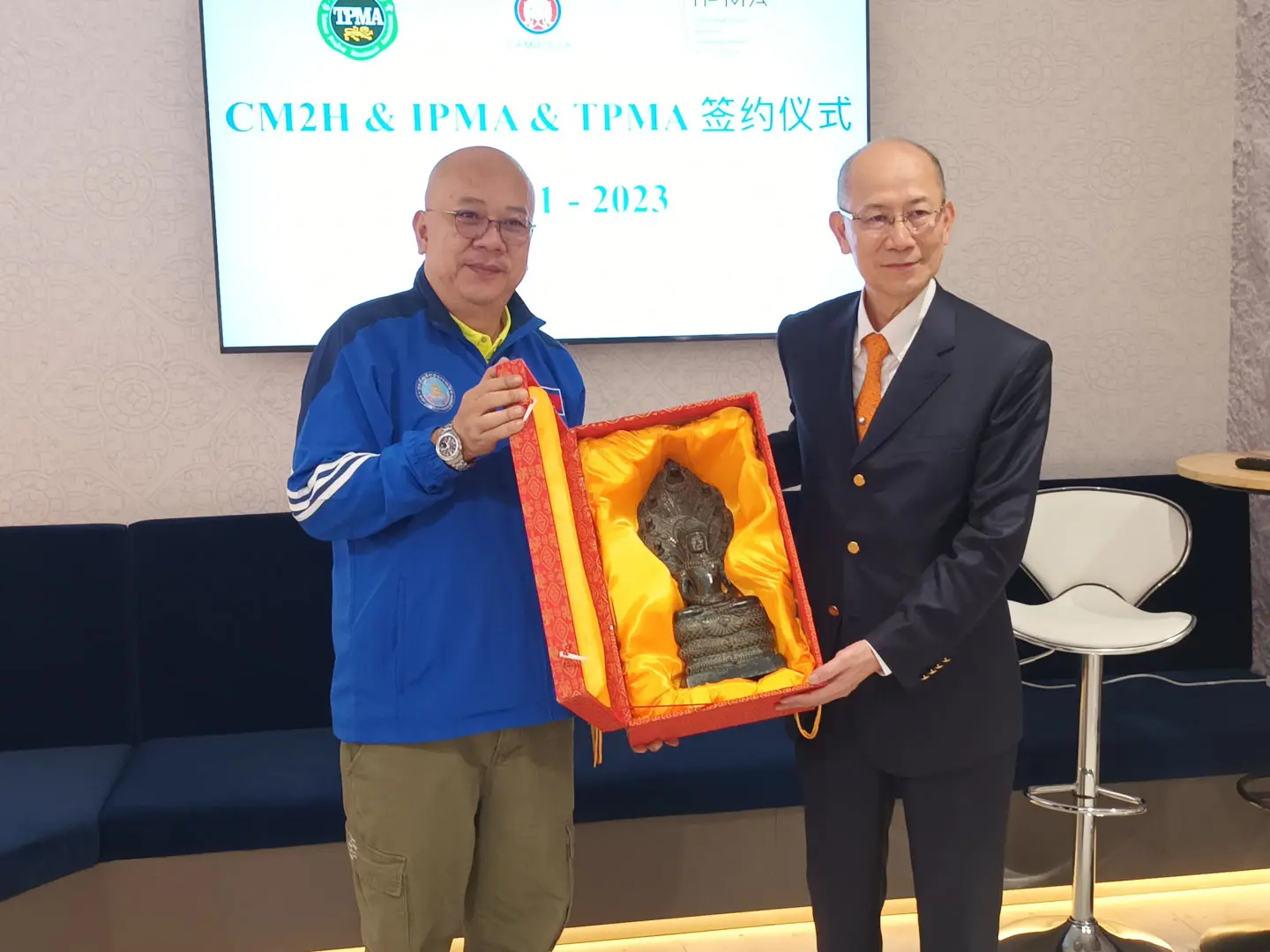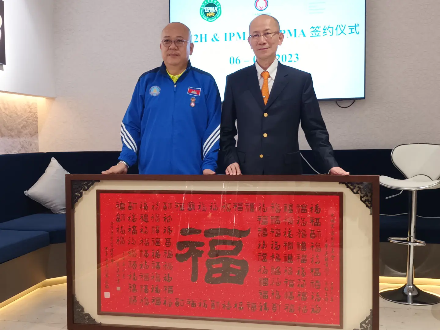 2023年1月4日 TPMA 理事長 李仟萬先生及隨行專家參訪柬埔寨福建總商會,並與柬埔寨福建總商會 邱國興會長討論合作事宜及共同合影留念。