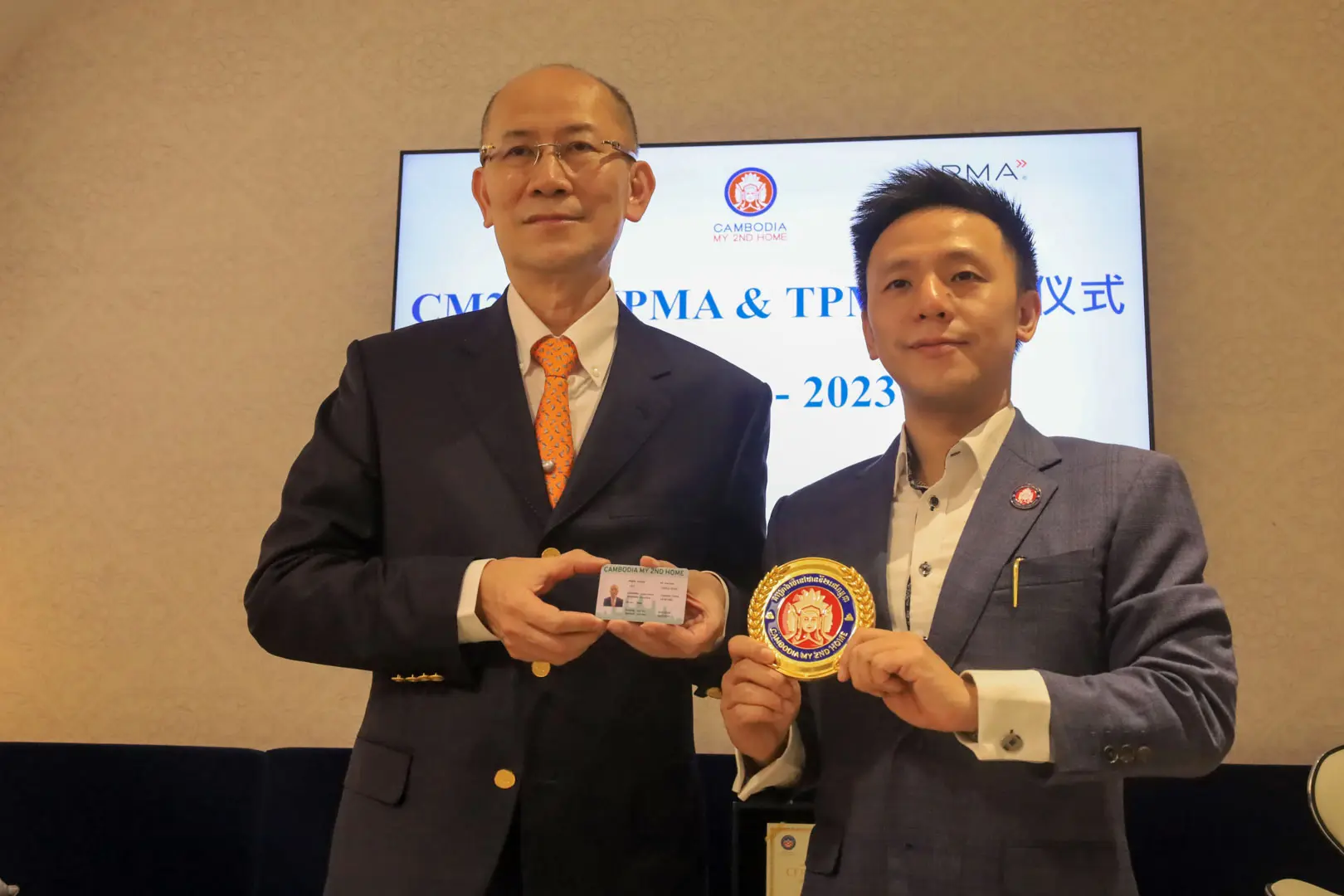 2023年1月5日 TPMA 理事長 李仟萬先生及隨行專家參訪柬埔寨台商總會,並與柬埔寨台商總會 鄭名榮副會長討論合作事宜及共同合影留念。