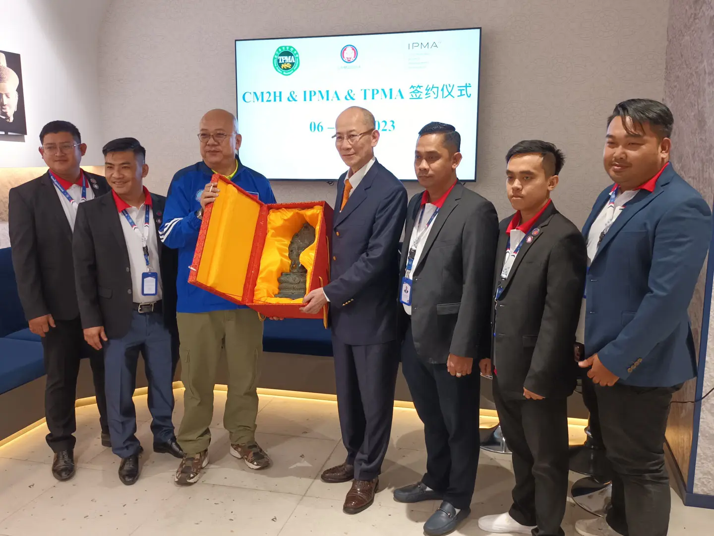 2023年1月6日 TPMA 理事長 李仟萬先生及隨行專家參訪柬埔寨柬華理事總會 ,並與柬埔寨柬華理事總會 林健忠會長及孔子學院 杜曾慧院長討論合作事宜及共同合影留念。