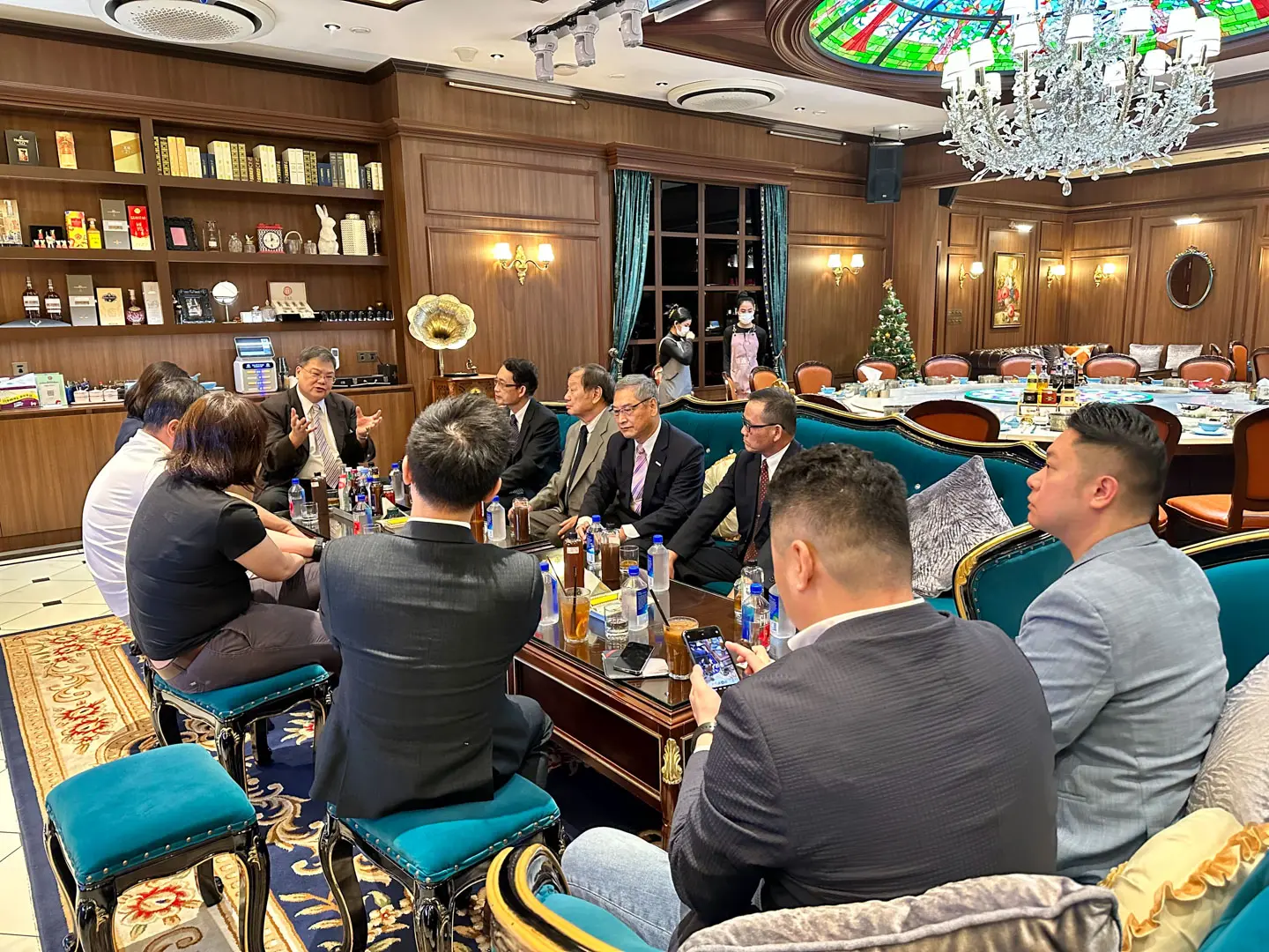 2023年1月3日 TPMA 理事長 李仟萬先生及隨行專家接受利鑫益國際貿易 劉愷莉董事長邀請參加柬埔寨東方宴餐廳款備迎賓午宴,並討論雙方合作事宜及合影留念。
