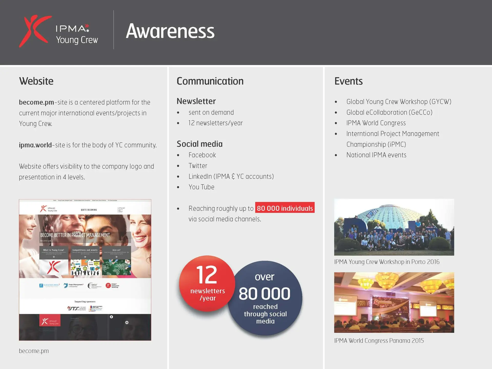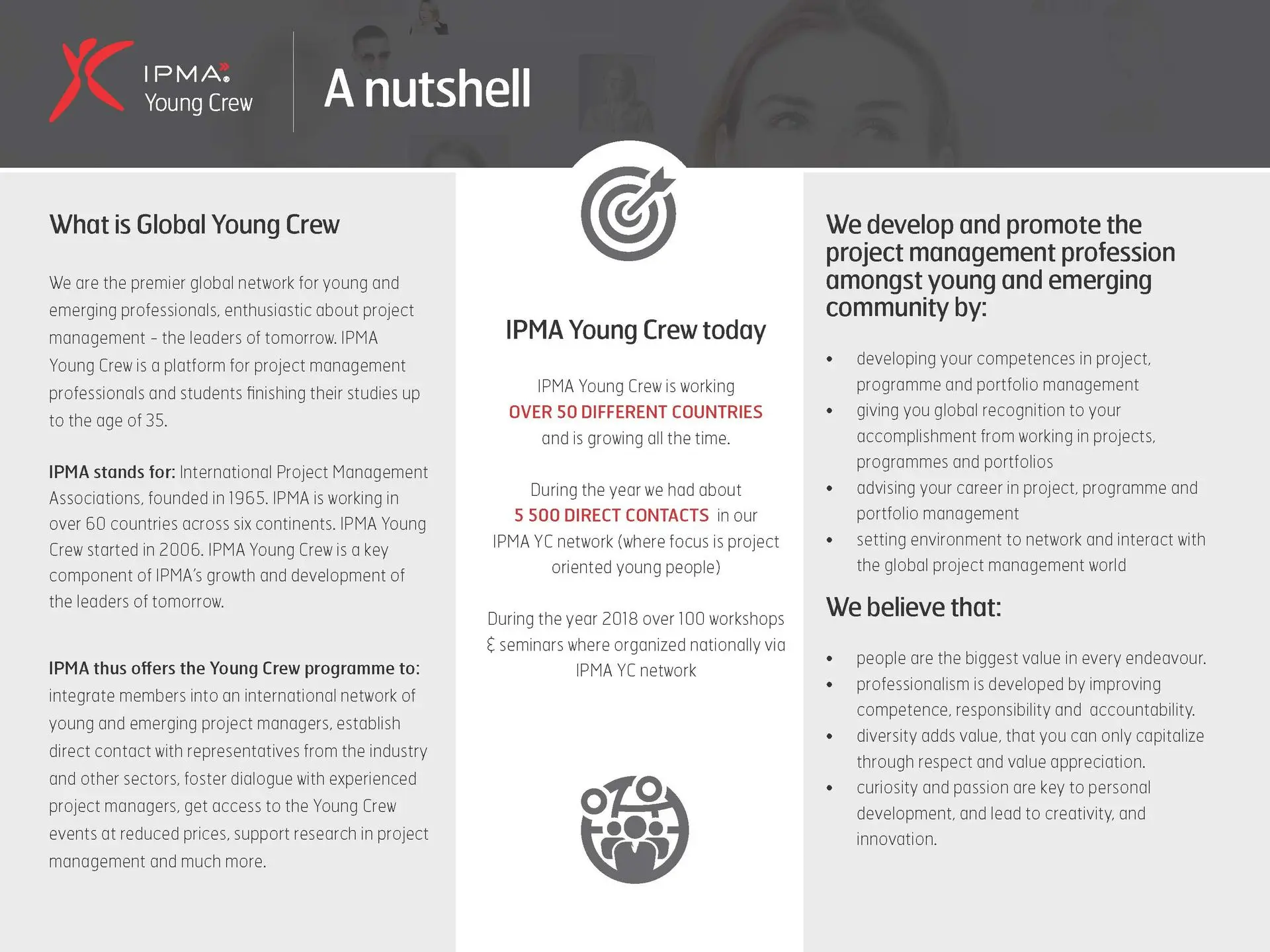 IPMA 青年團是年輕人和新興專業人士的首要全球網絡平台,提供對專案管理充滿熱情的未來領導者、專案管理專業人士和35歲以下的青年完成志業。