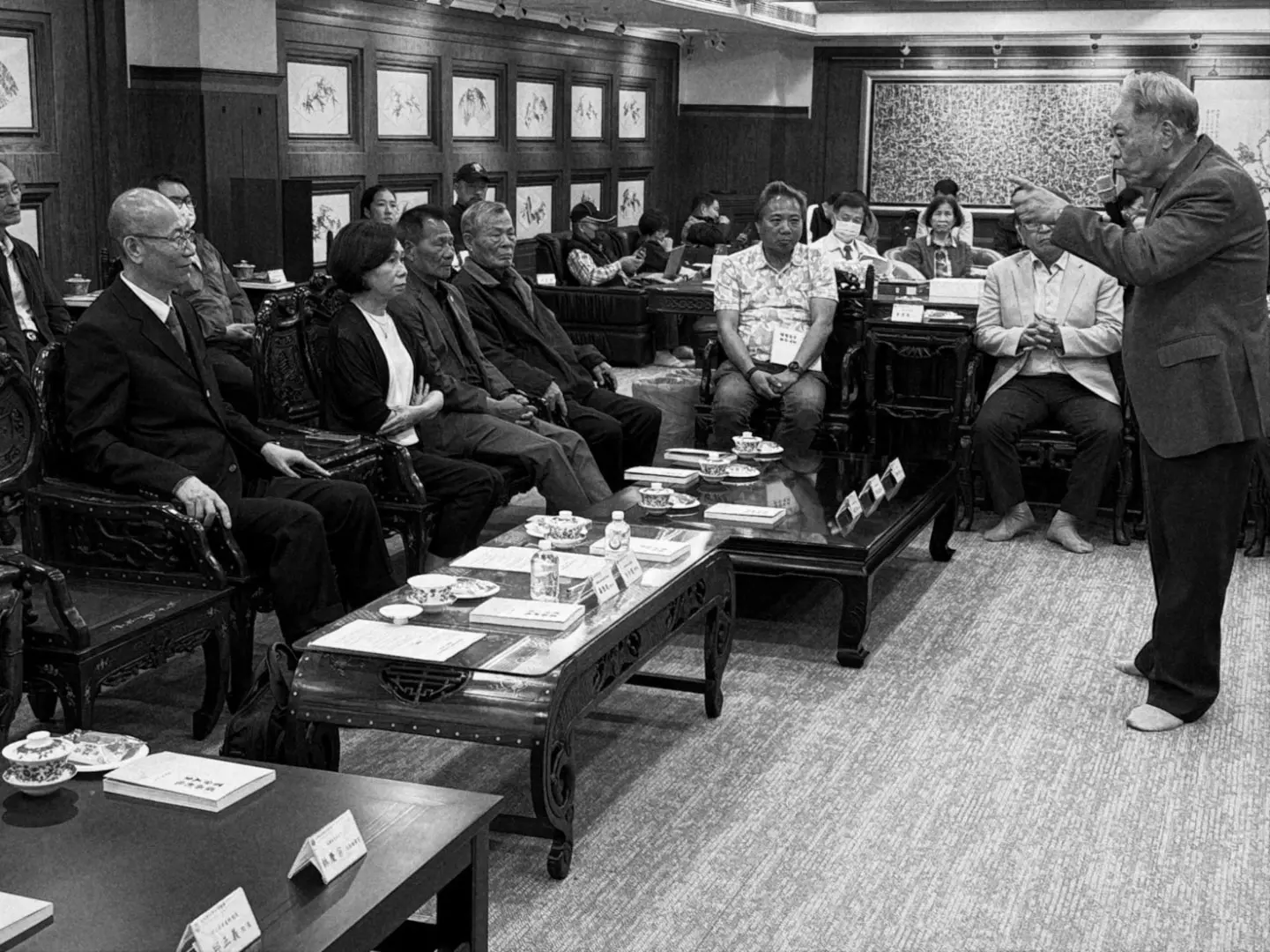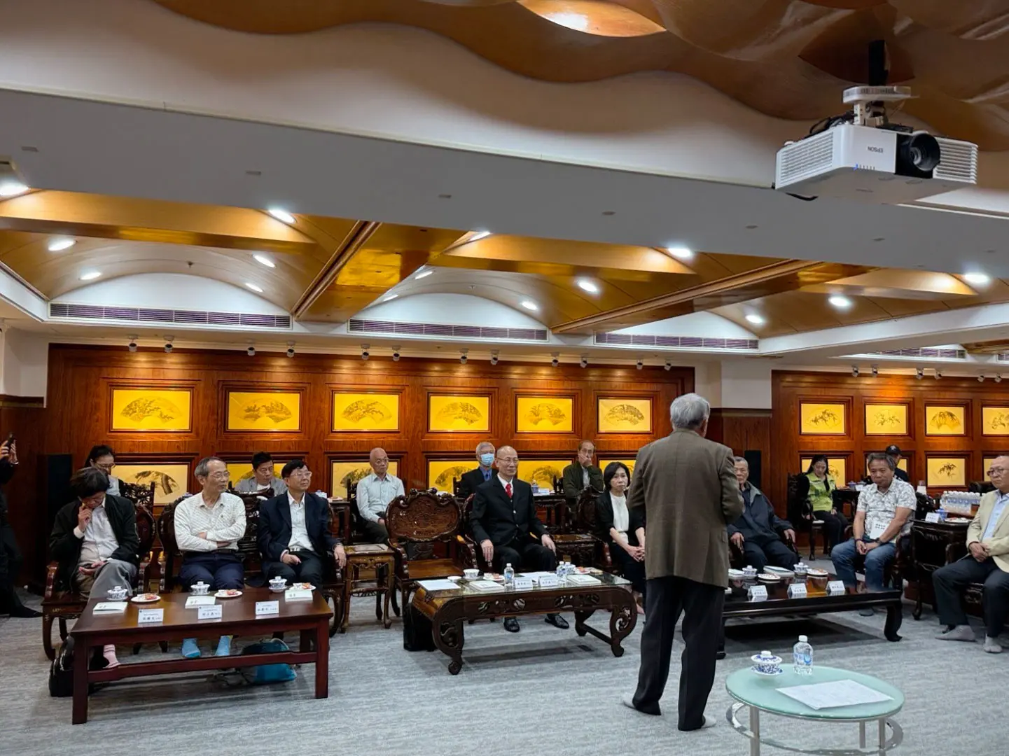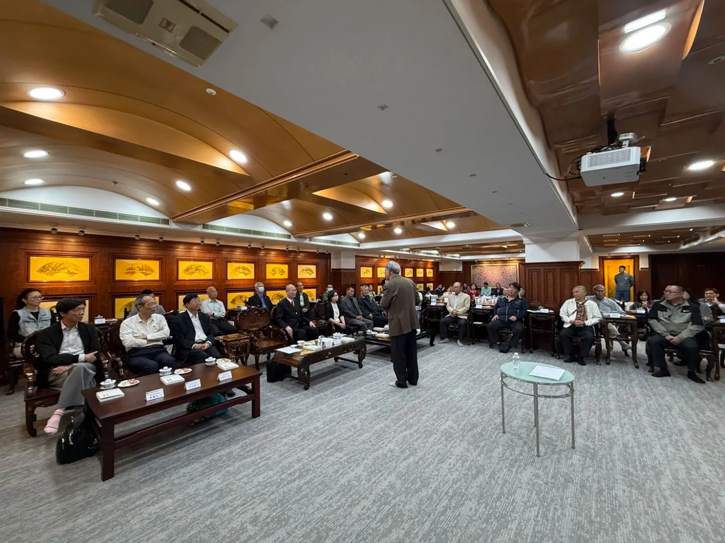社會關懷專題講座六日下午於媽祖聯合會台灣總會登場,李仟萬理事長偕理事、幹事們出席,高檢署林慶宗主任檢察官、邱正義婦產科院長、萬花筒廣告國際事業翁文堂負責人、媽祖學院委員會高義展召集人、屏東大學張繼文教授、煜霖工程李清俊負責人等近六十人到場聆聽羅榮乾的精闢見解。